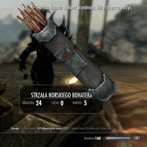 - zmieniona liczba strzał po "wykuciu" do 10, w przypadku strzał daedrycznych do 50, a bohaterskich do 15.
