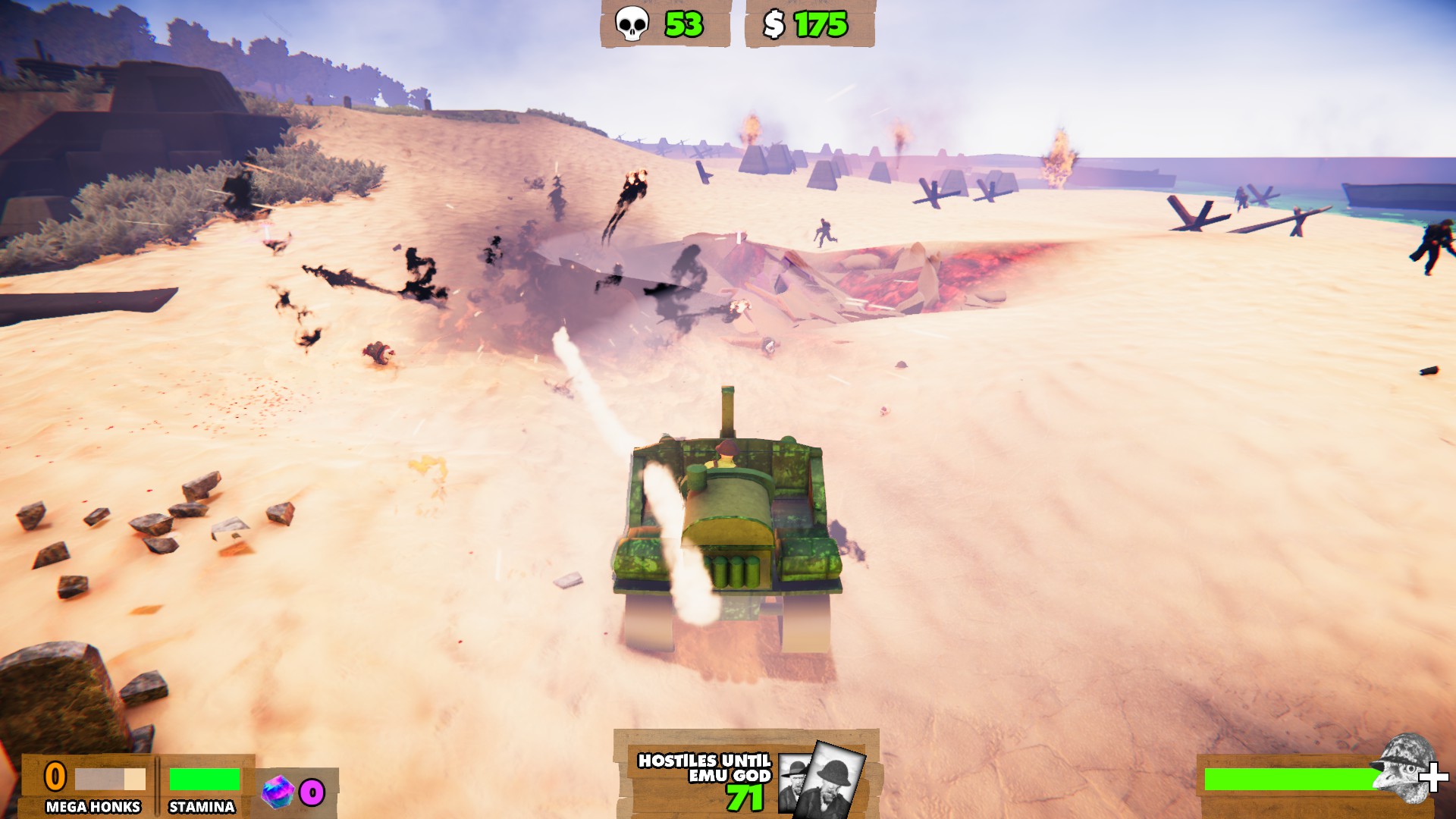Human vs Emu carnage! Play as either man or bird in this game featuring open world, sandbox environments to smaller scale arena skirmishes. Customise your own battles using unlocked characters, weapons and vehicles in Architect Mode!