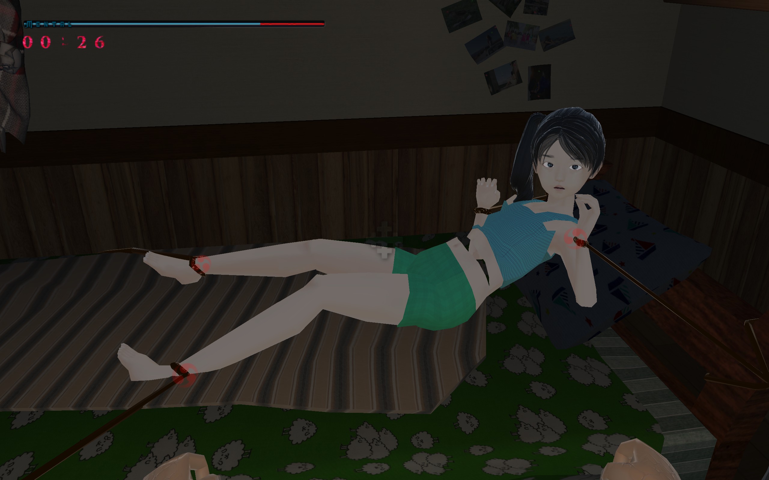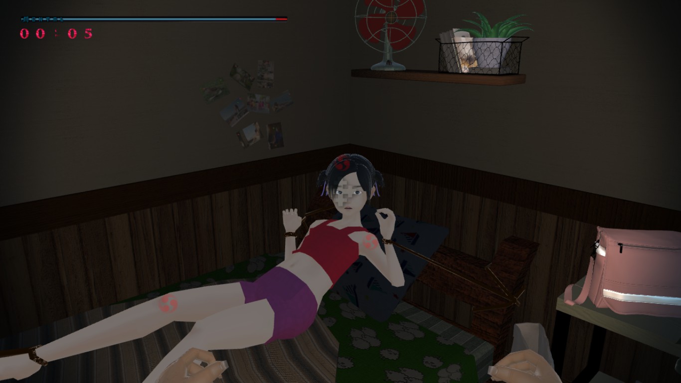 A first-person game that uses a keyboard and mouse to block evil spirits and reassure girl.