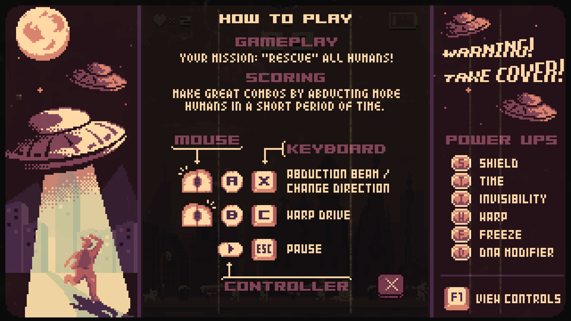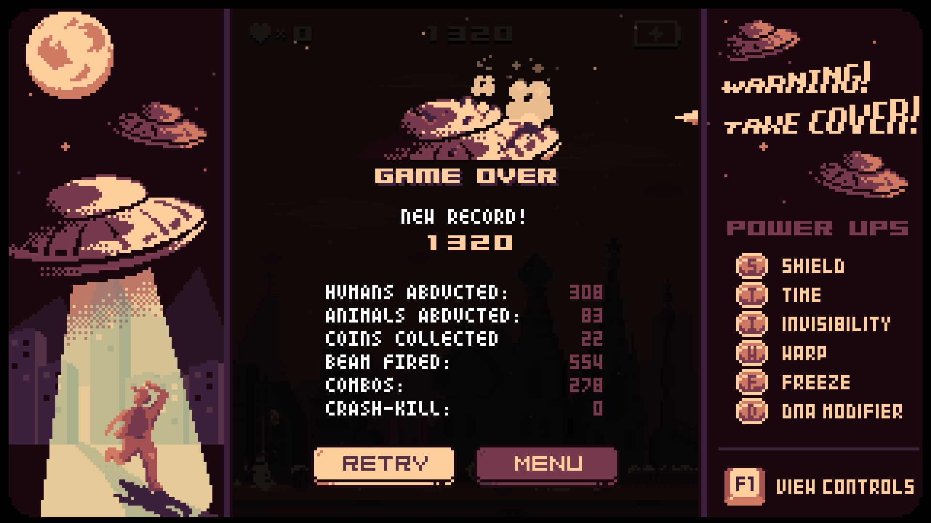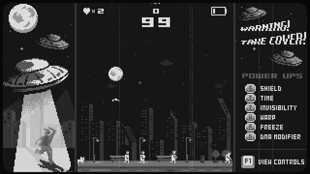 They Came From the Sky is tiny, retro styled, highly-addictive and fast paced arcade game wherein you take the role of one of the Flying Saucers in the 1950s with one and only one Mission: Make a delicious juicy Human Smoothie!