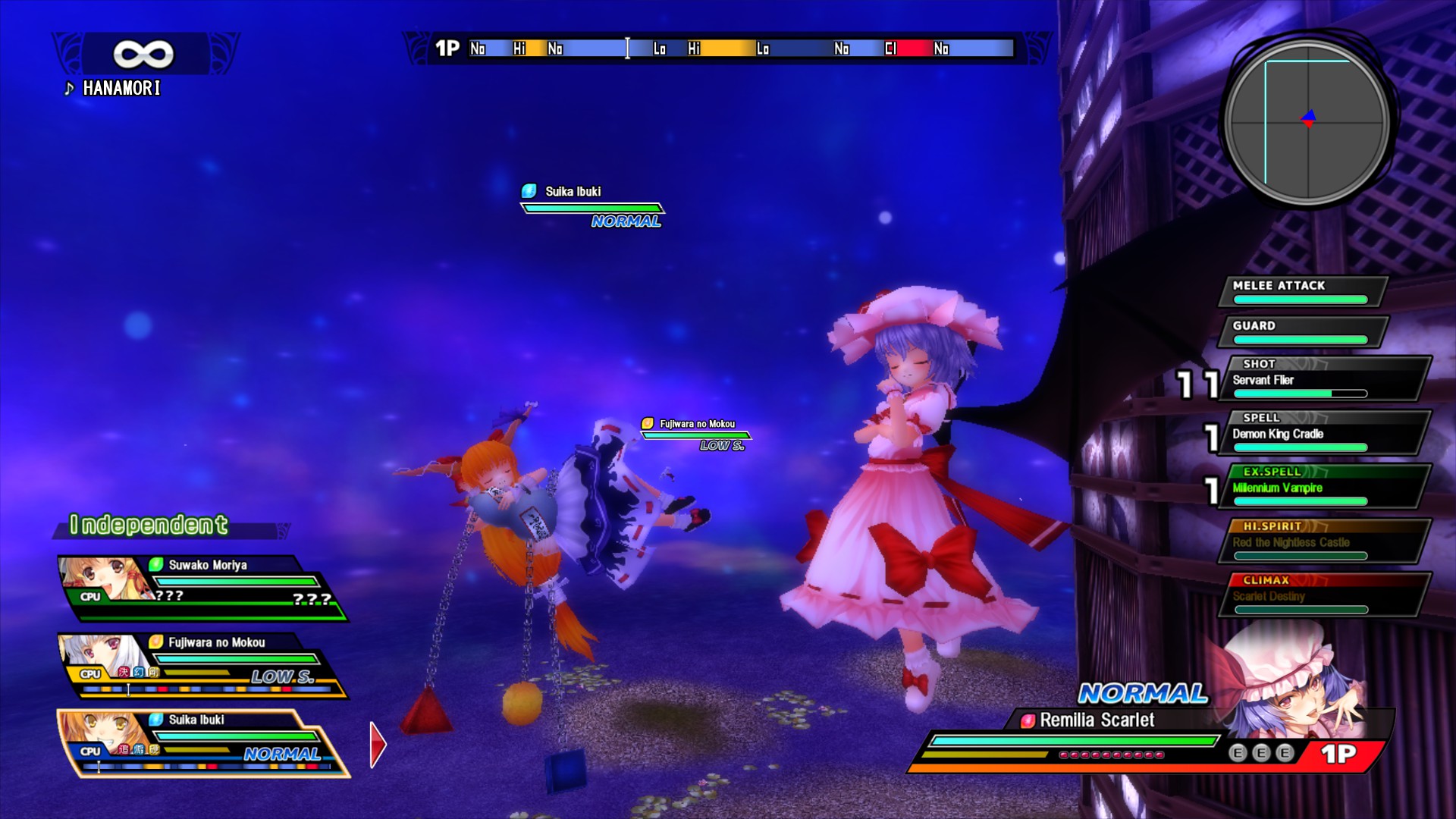 Touhou girls fight dramatic battles in the sky! A 3D fired-up battle action game based on Touhou Project! Features a "Fired-up Battle System", in which characters abilities change to the playing song.
