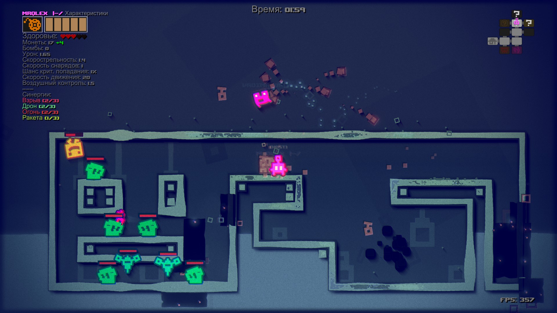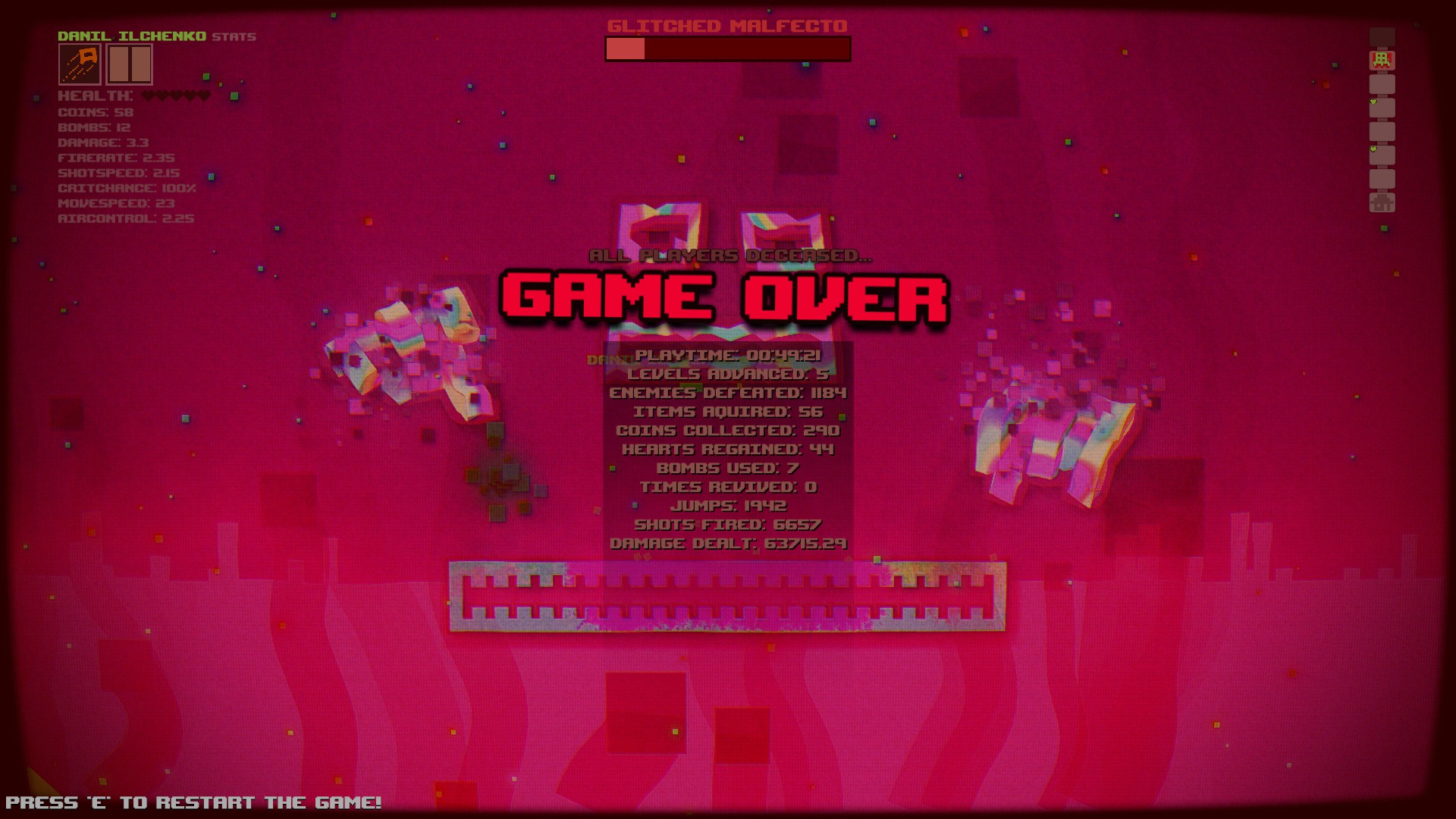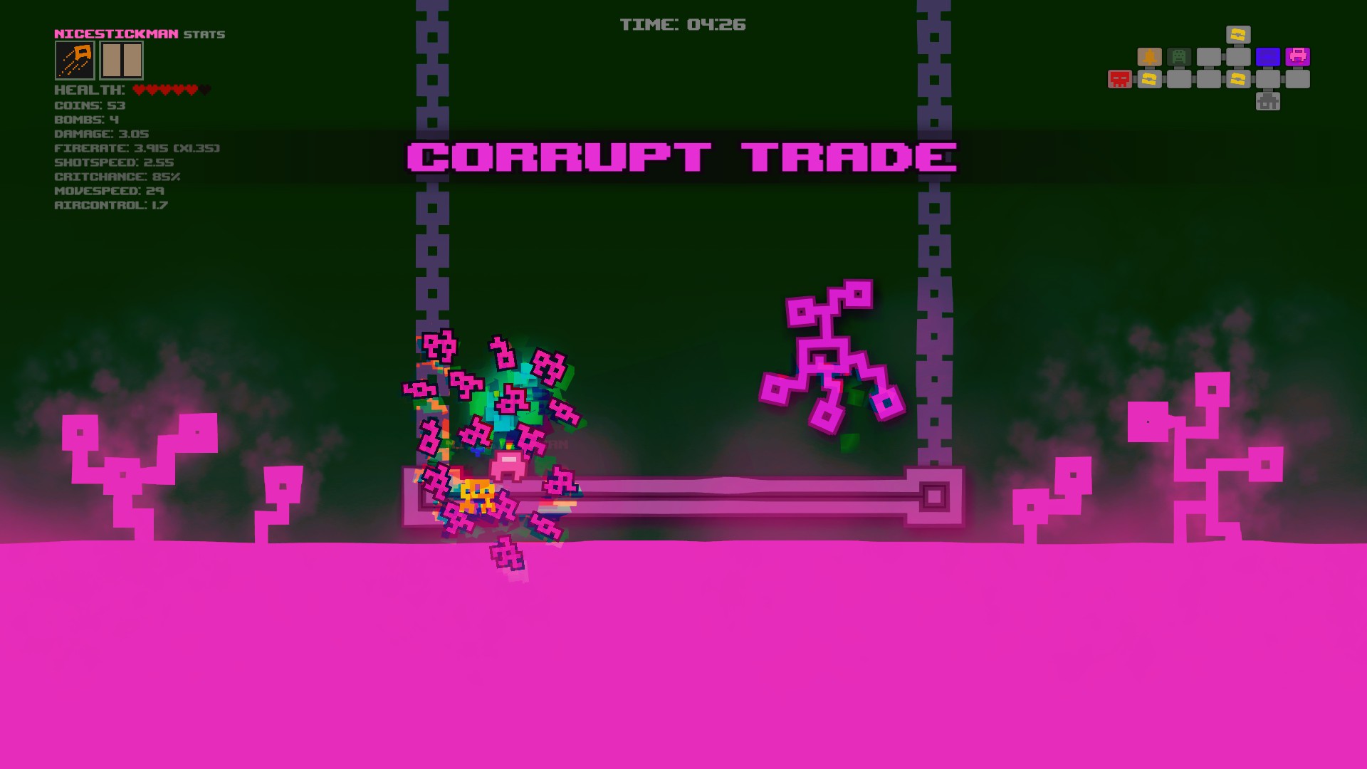 A roguelite action platformer in a vibrant glitch-ridden world. Amass a huge arsenal from over 150 weapon options and face hordes of enemies and tough boss fights. Jump into multiplayer (up to 4 player co-op online or local) to collect, unlock, and upgrade for endless replayability.