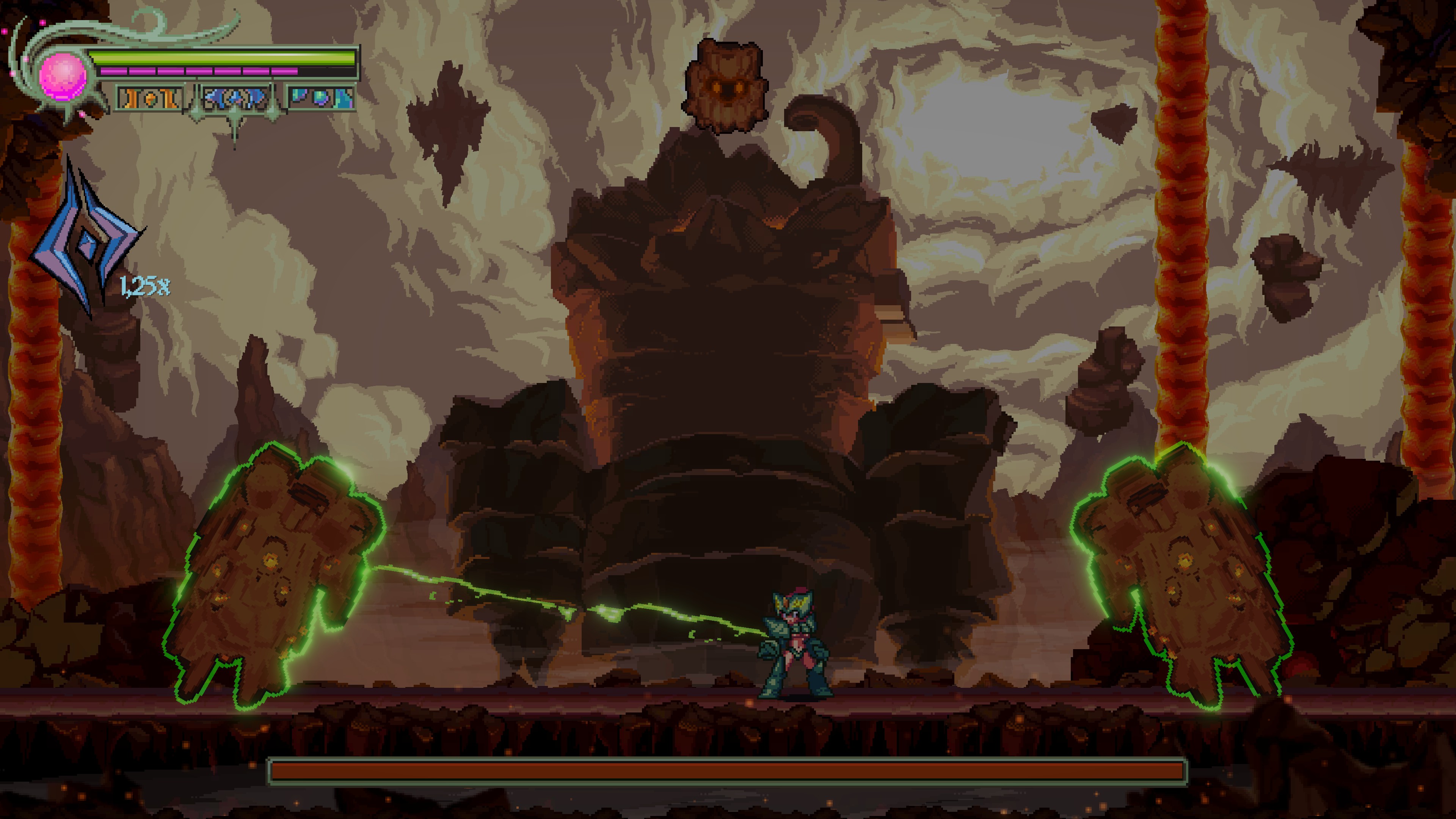 You are Eve, fresh out of Eden and armed with a living suit of armor, Smelter. Explore a dangerous new world, battle its bizarre denizens and expand your empire in a desperate journey to find Adam.