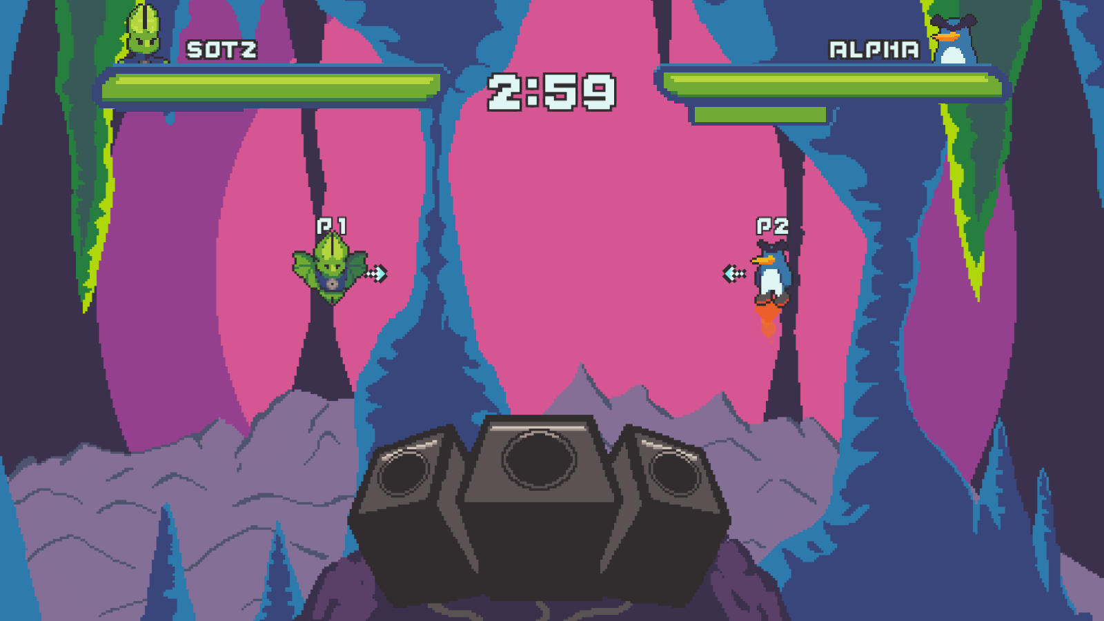 Back in May we released the 5th character Sotz, and now we're releasing her stage with her theme! The speakers and green stalactites act as walls that you can use to block attacks or get away from an opponent.