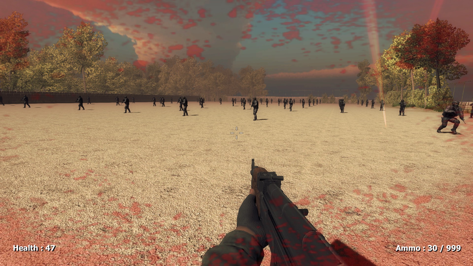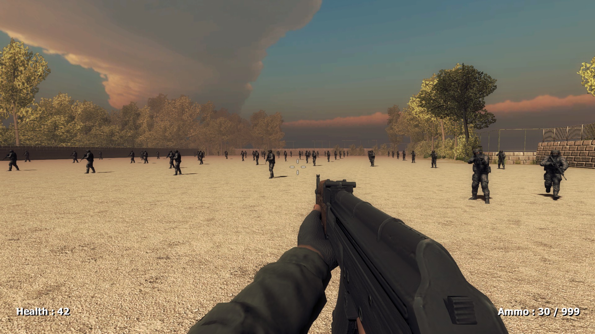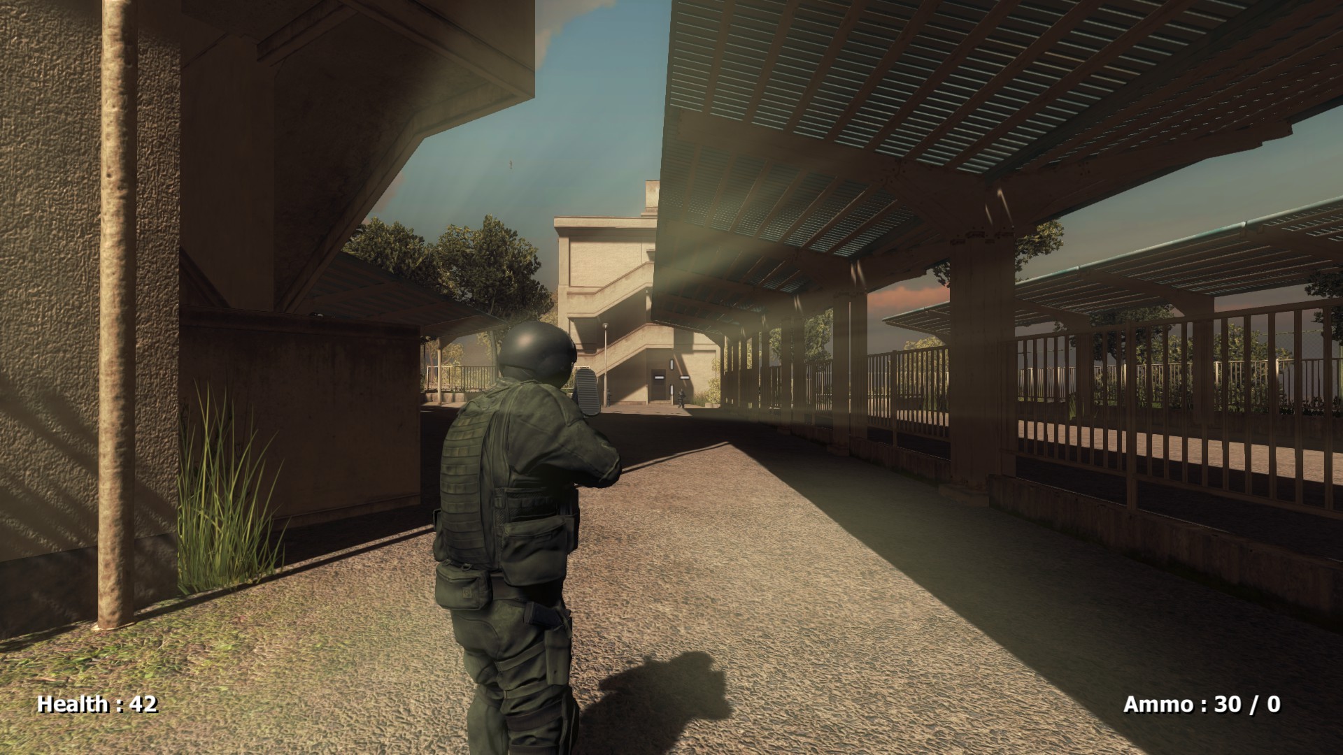 This is a first person shooter,A school is occupied by enemy forces and players can explore freely to familiarize themselves with the school's terrain,Players need to be careful to avoid enemy attacks or kill them.Players need to stay alive as long as possible.