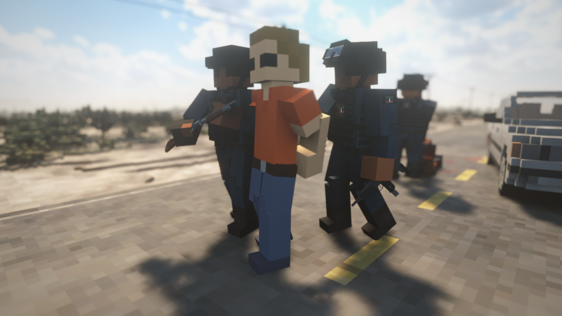 Prepare the perfect heist in a fully destructible, simulated voxel world. Tear down walls with vehicles or use explosives to create your own shortcuts. Shape the environment to your advantage in the most creative ways you can imagine. Play solo or with up to 12 players in multiplayer.