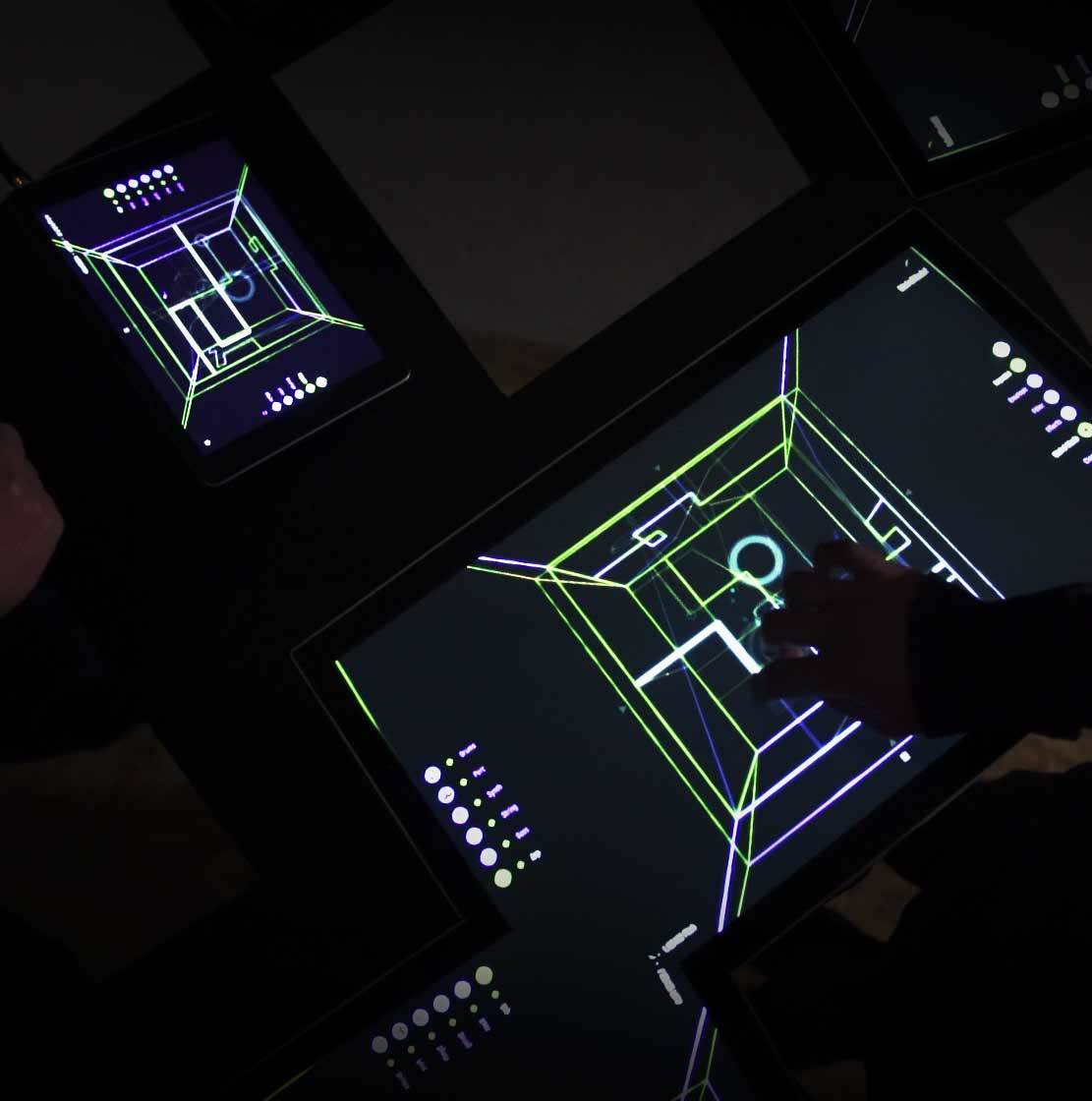 Create your own beat loops and melodies. Play live synth, drum, sampler loops with effects on the square surfaces of an interactive hypercube. Mutate your loops and experience them in different musical perspectives.