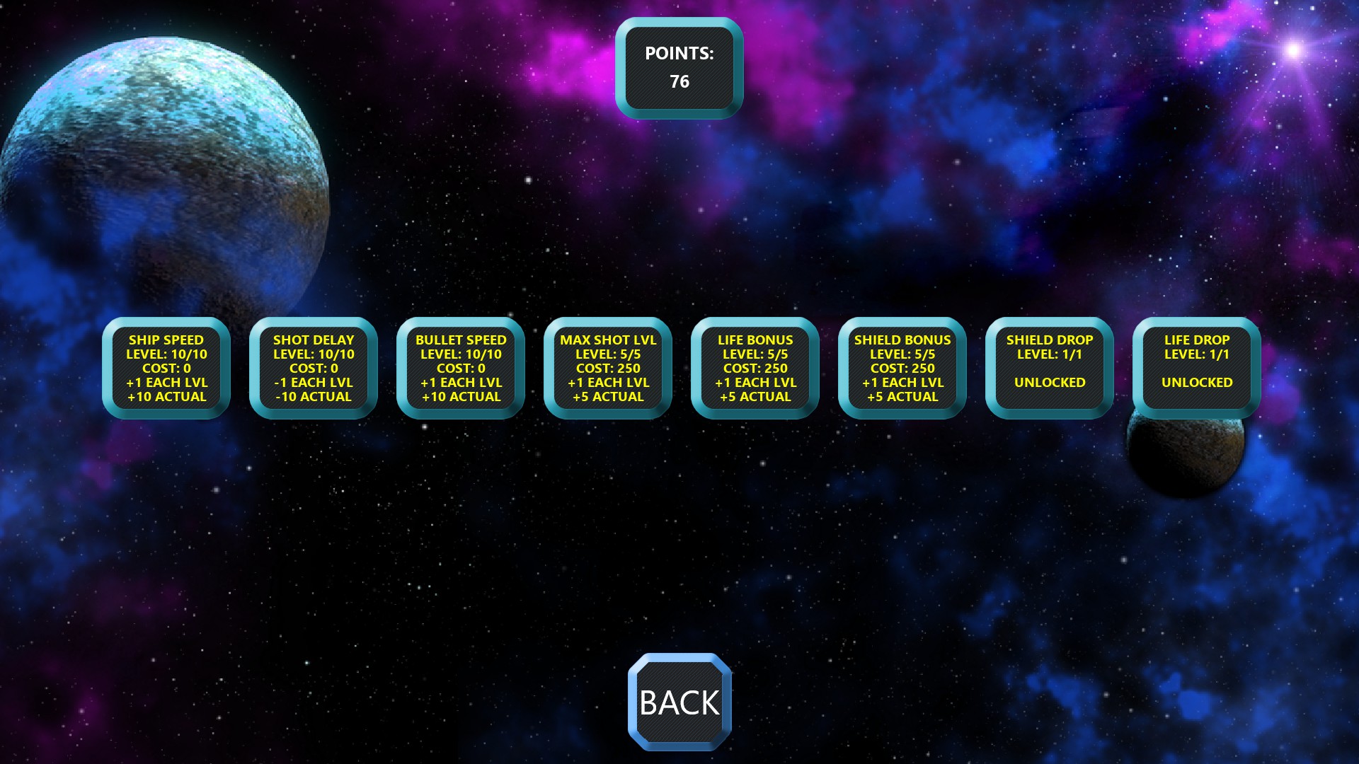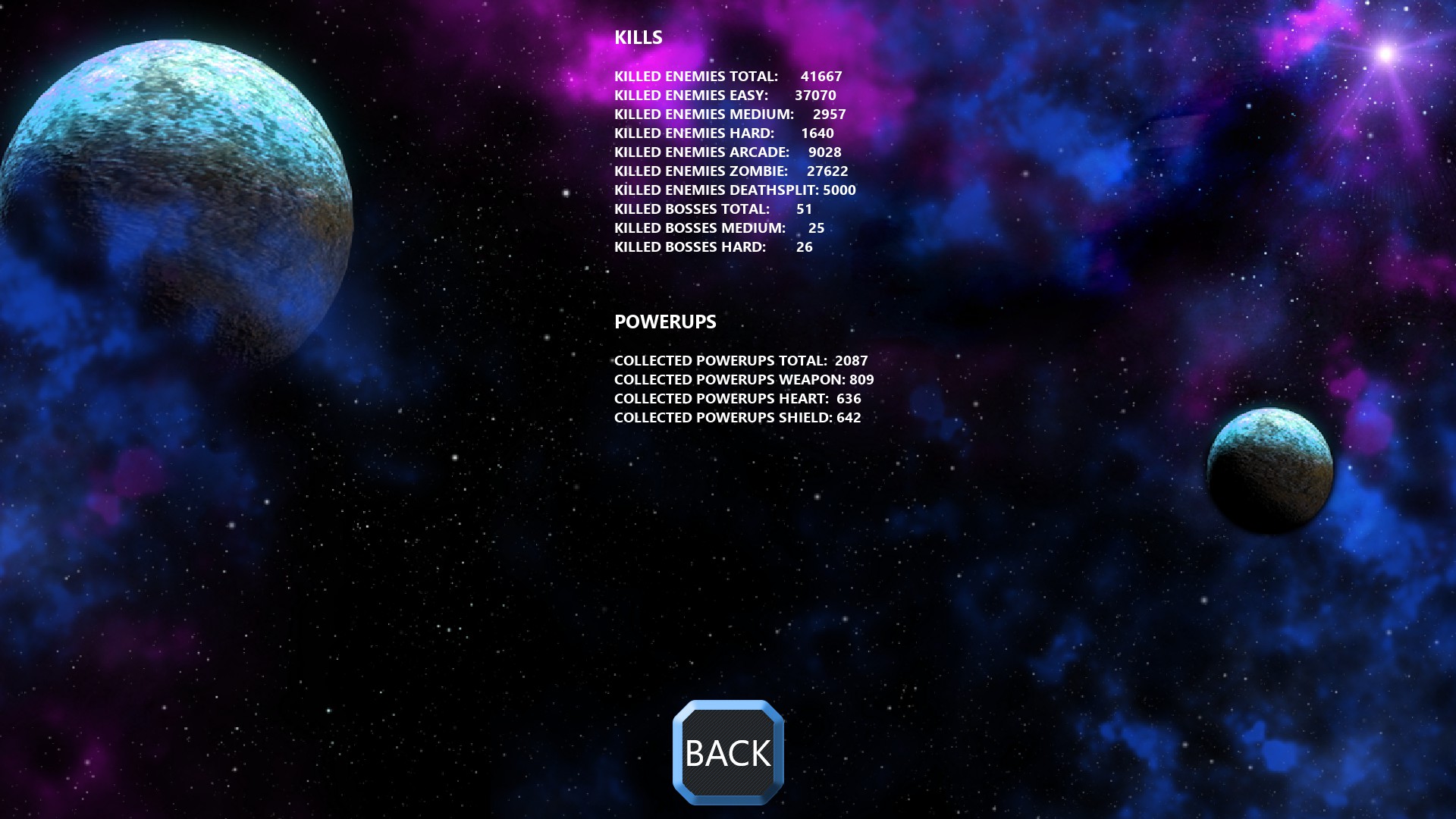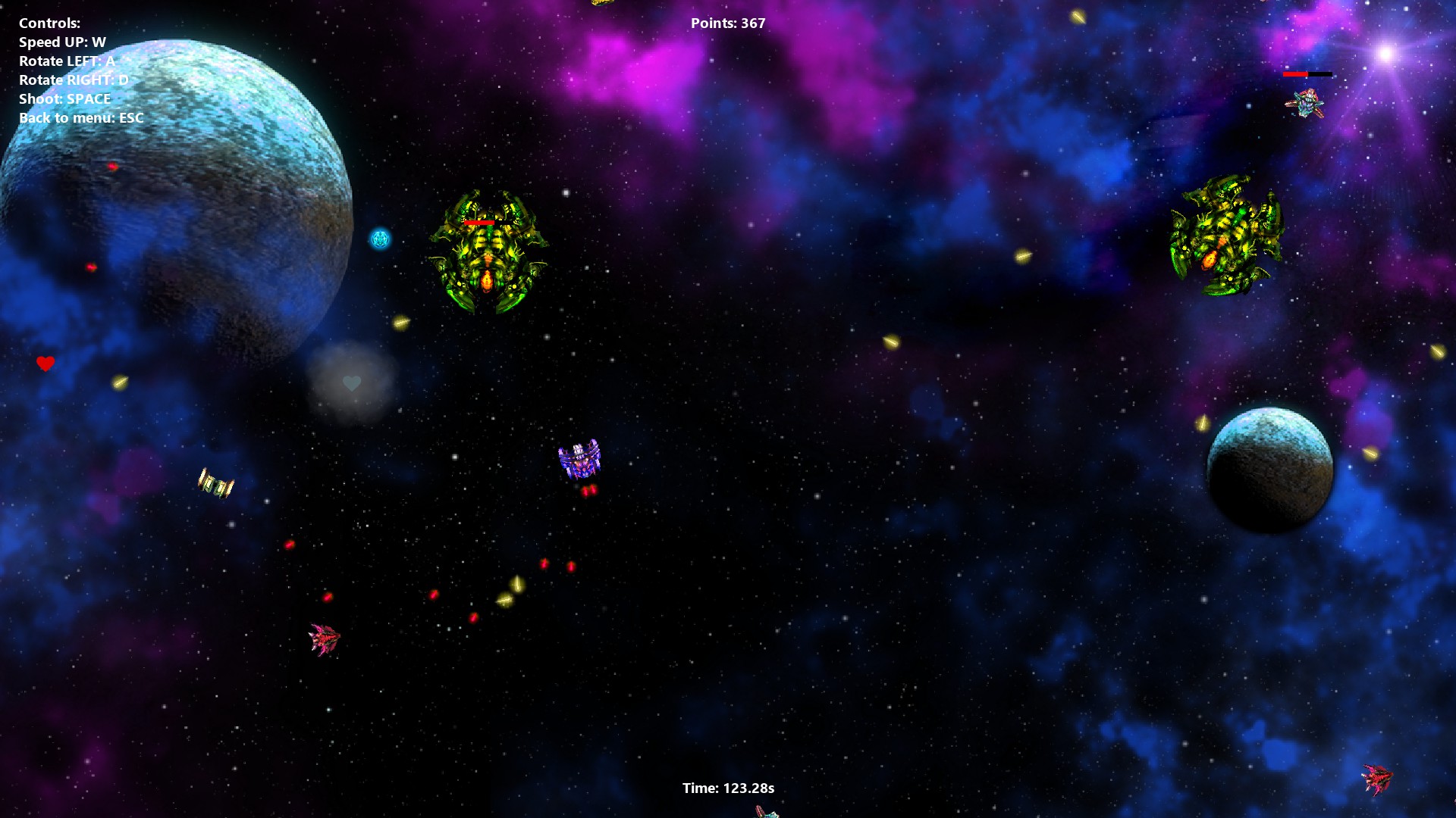 Space zone defender is an oldschool arcade style space shooter. You can choose between different weapon sets and ship skins and try to survive as long as you can.