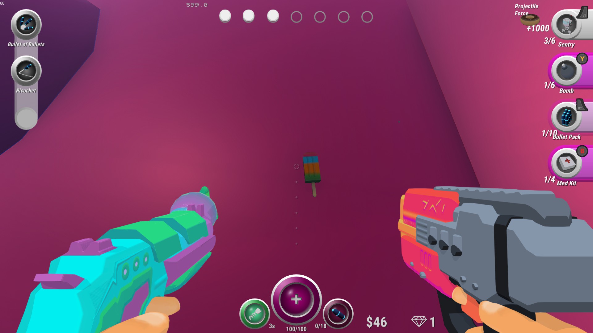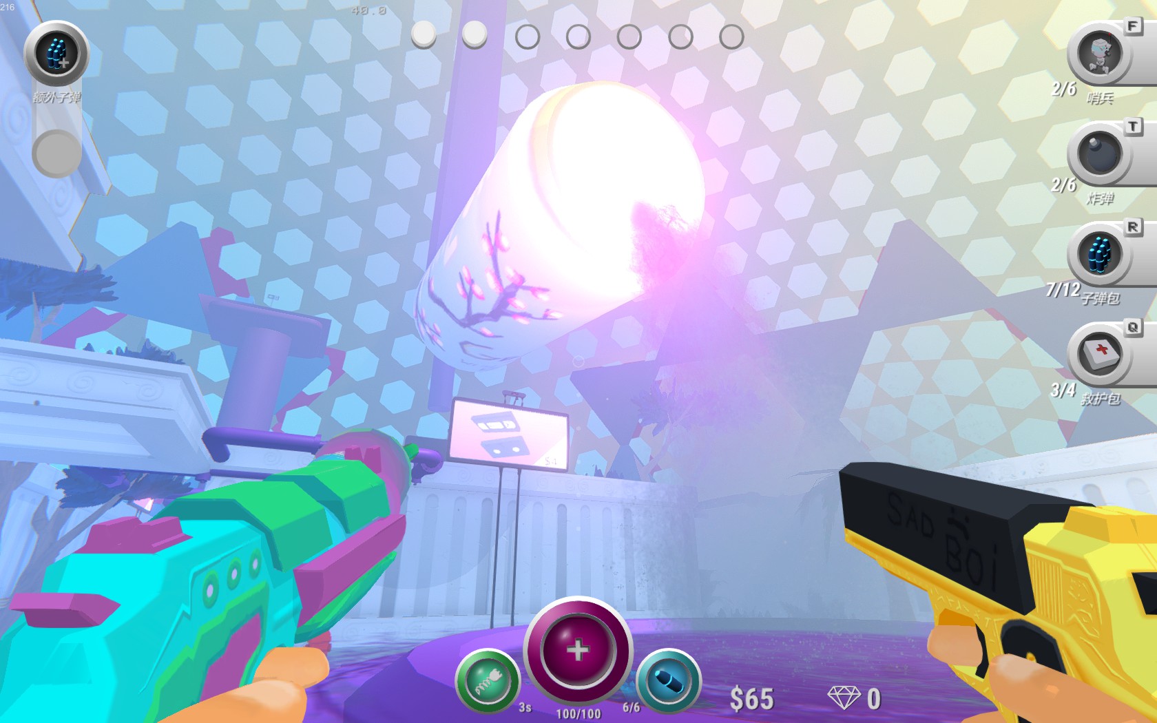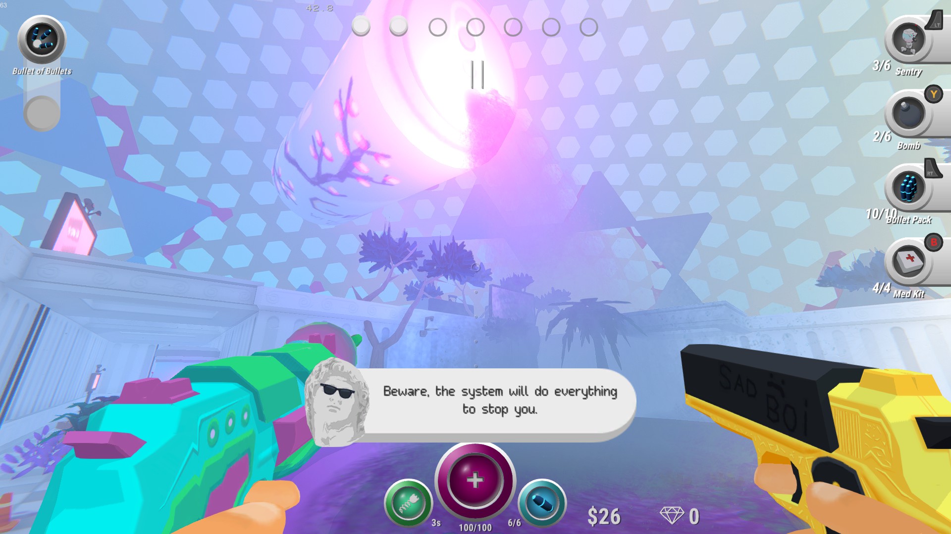 vapormaze is a roguelite FPS in a vaporwave maze. You are trapped in a maze of lies. To escape, you must find the truth. Shoot robots, jump spikes, buy guns, get upgrades, throw bombs and explode the system. Can you escape?