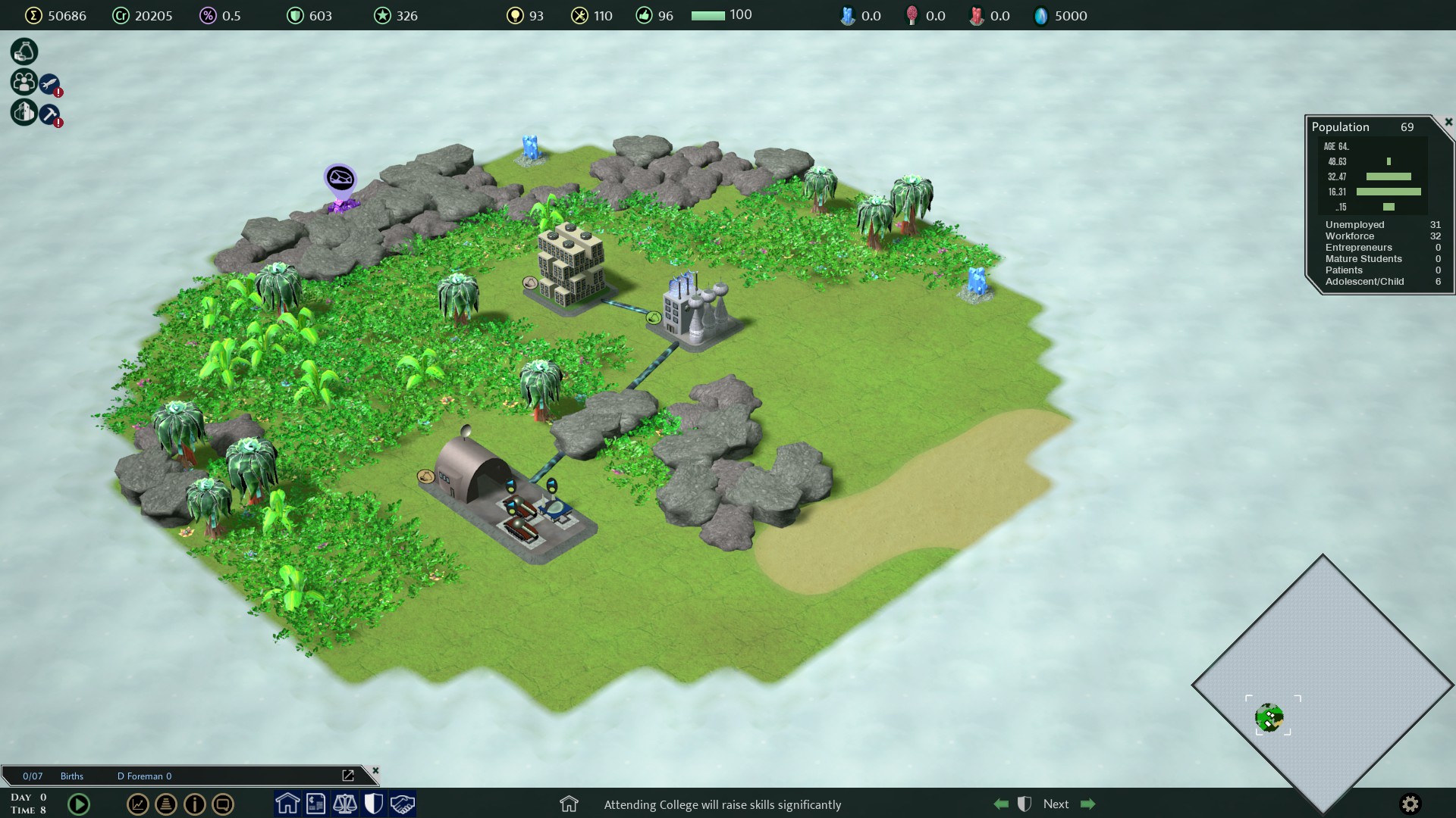 Real time strategy and society management game. Explore the planet, build and defend your colony. Trade products and armaments and take advantage of price changes. Let your colonists establish their own businesses or build the buildings yourself. Fight against the enemy colonies and alien lifeforms.