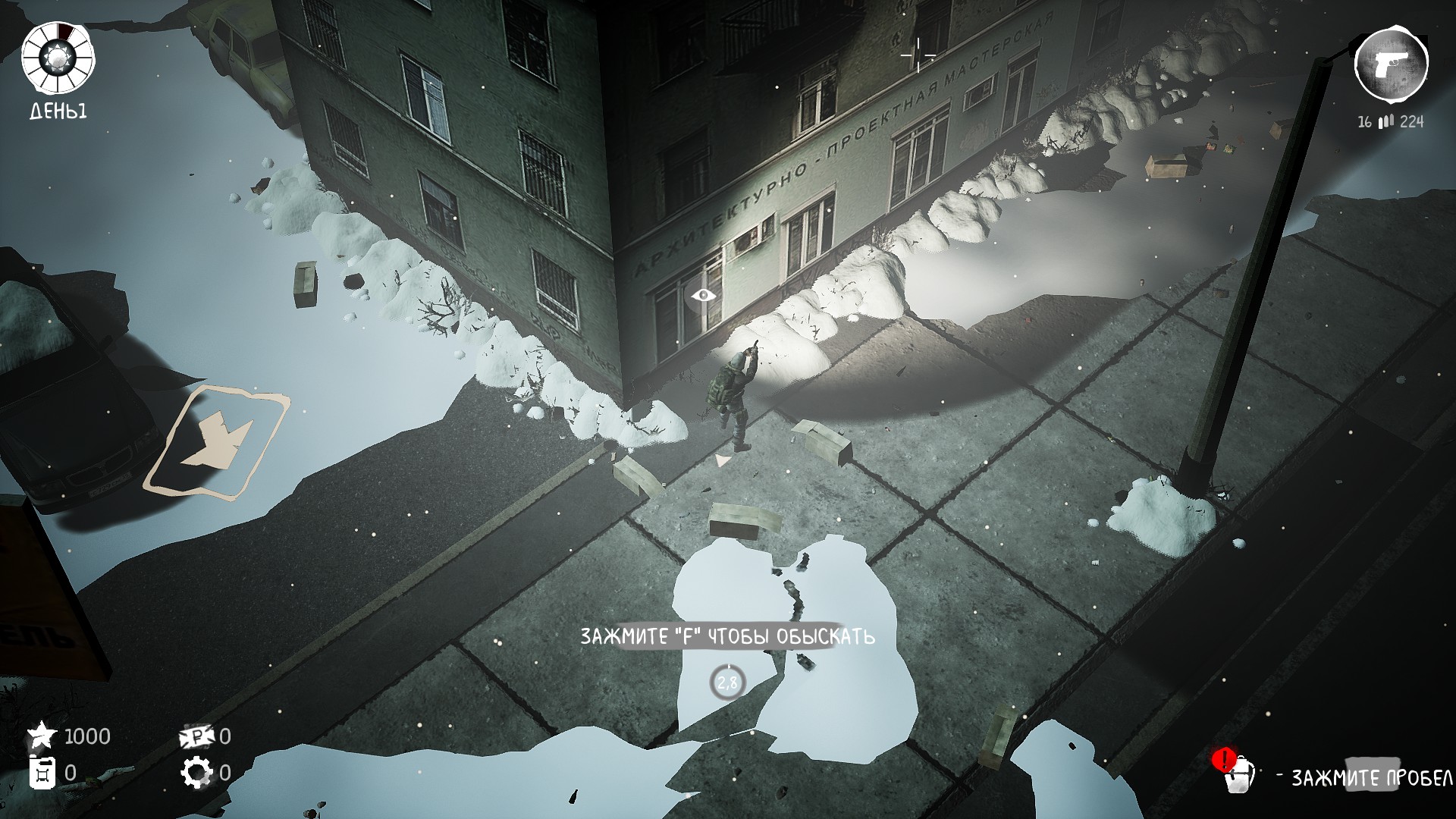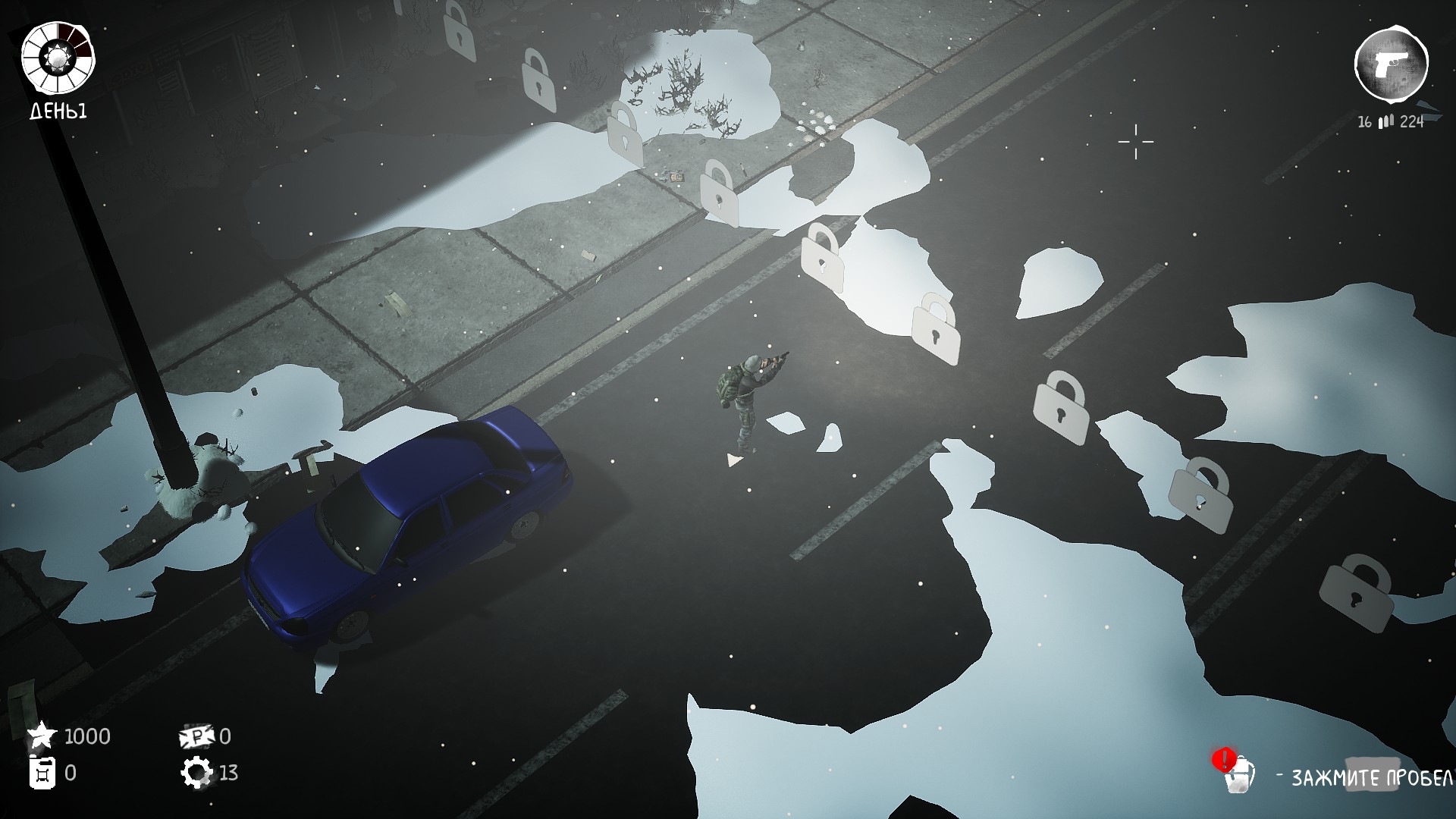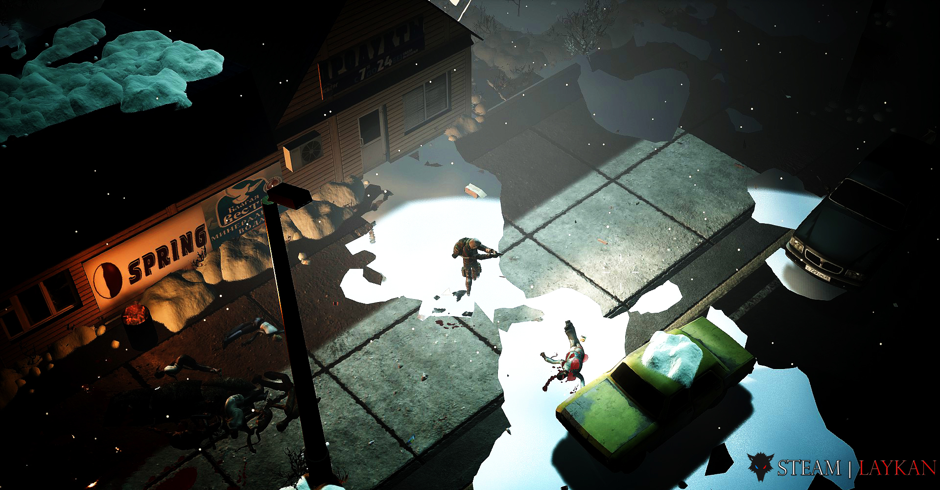 A dark co-op top-down shooter in a post-soviet zombie apocalypse setting. You appear at a random location in the city. The goal is to get to the transport, and you will make the path yourself. In the day - look for resources and build fortifications. At night - destroy the dead and their bosses!