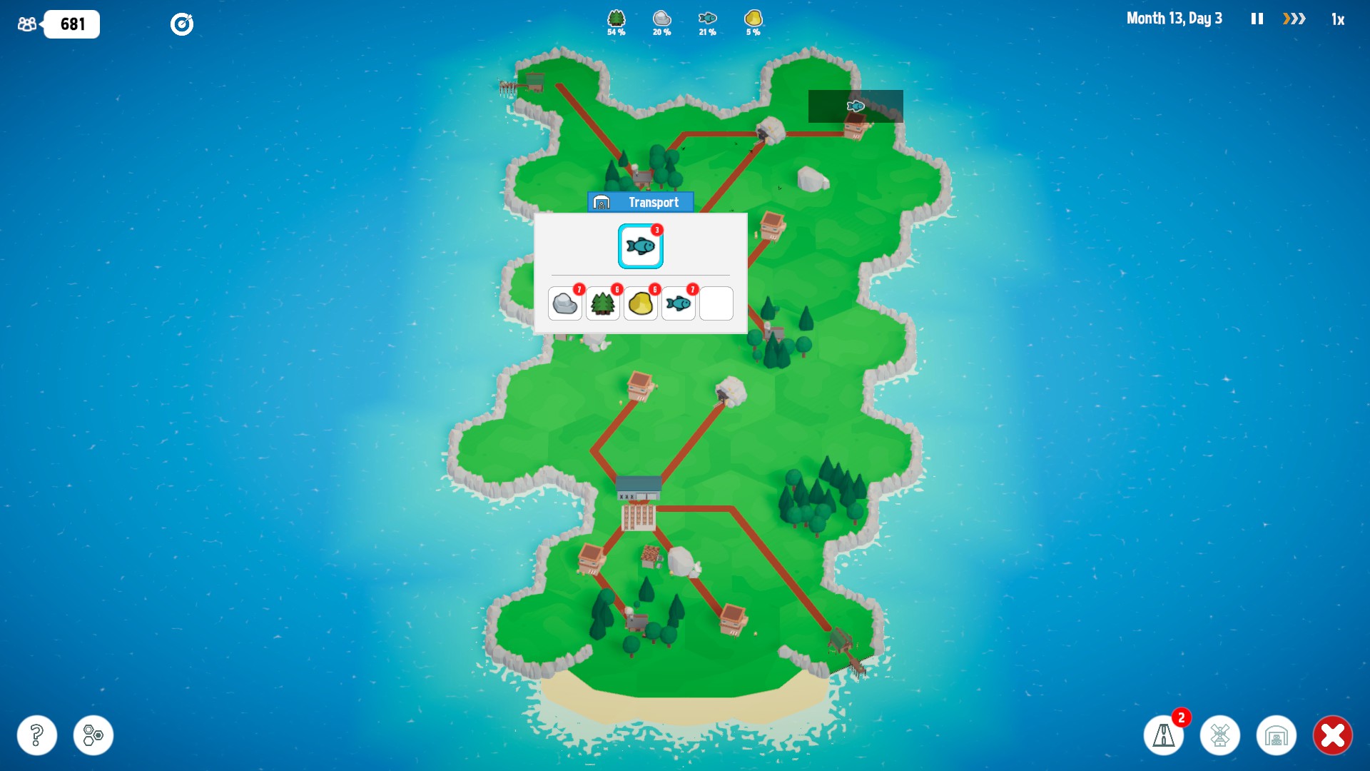 A level-based strategy/puzzle game where you have to build up a resource transport network for a country.