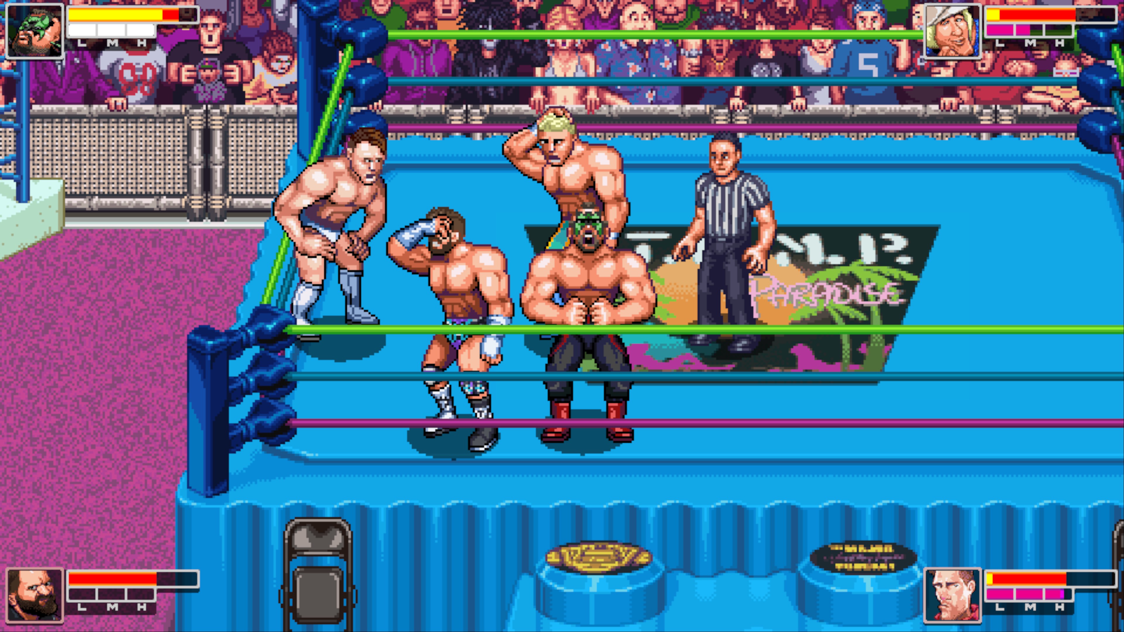 RetroMania Wrestling is a throwback arcade game inspired by classics of the past, with great 2D action and an eclectic roster of wrestlers past and present!