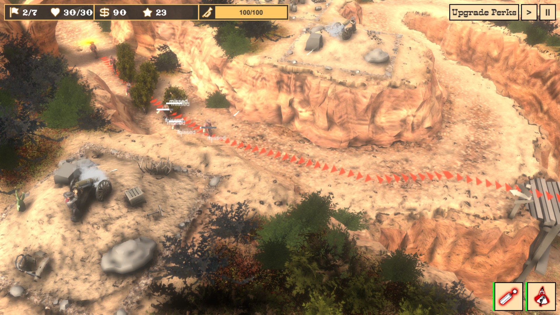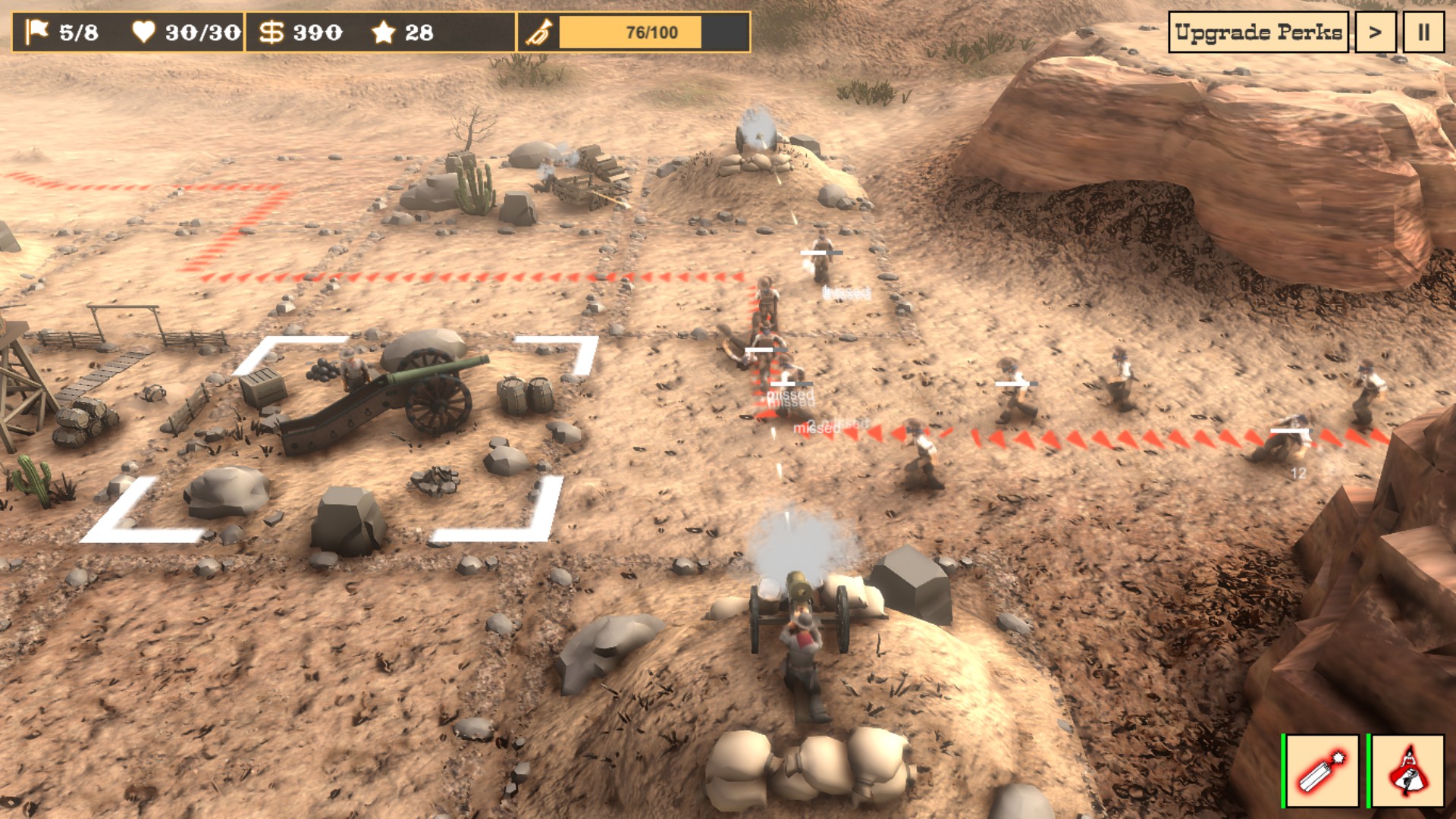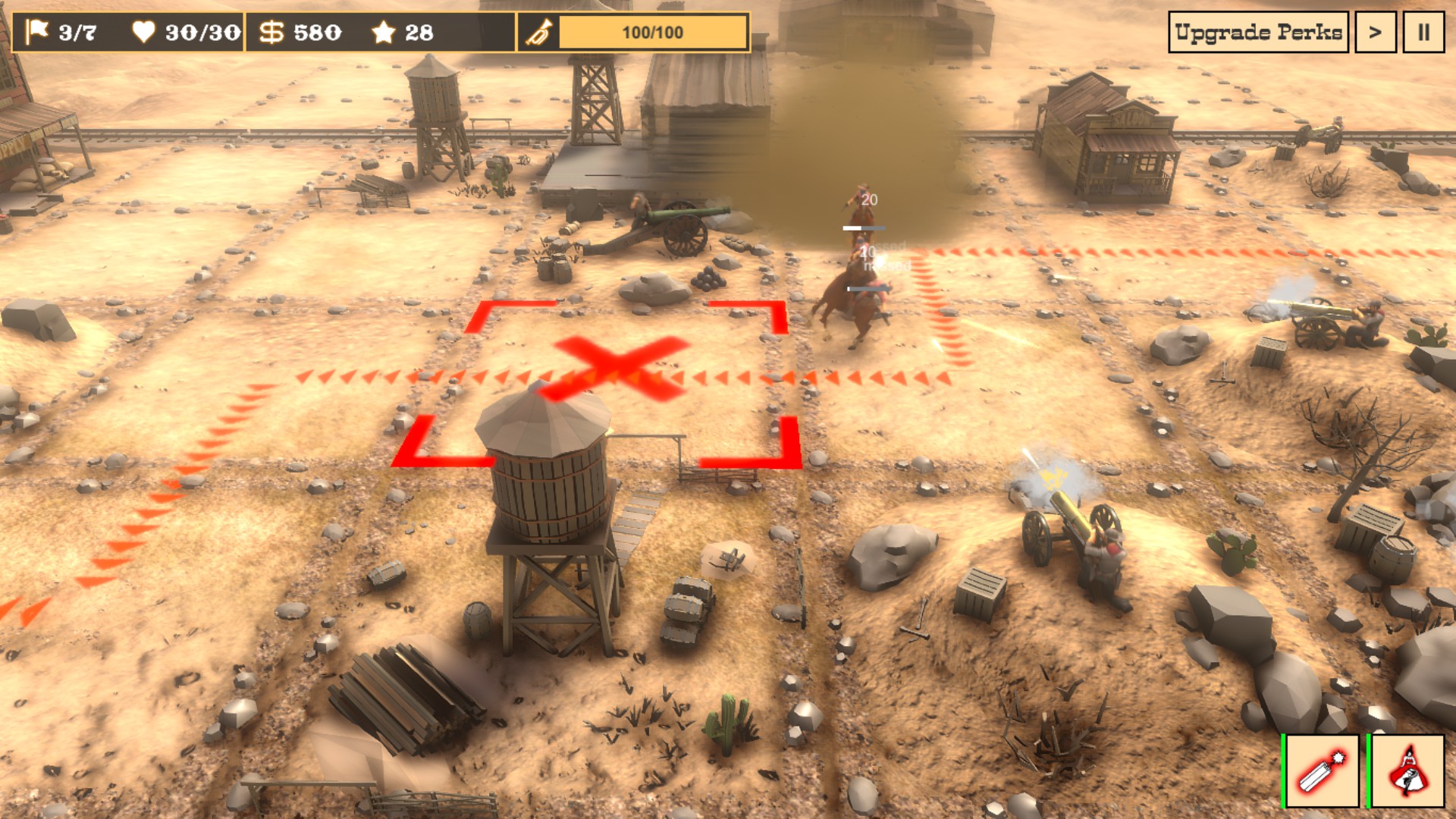 Defenders of the West is a tower defense game set in the wild west that adds a few unique twists to the classic genre. Defend the west against a large group of bandits! Enjoy the unique setting, beautiful, hand crafted environments, dynamic levels and a cool story with a pinch of humor!