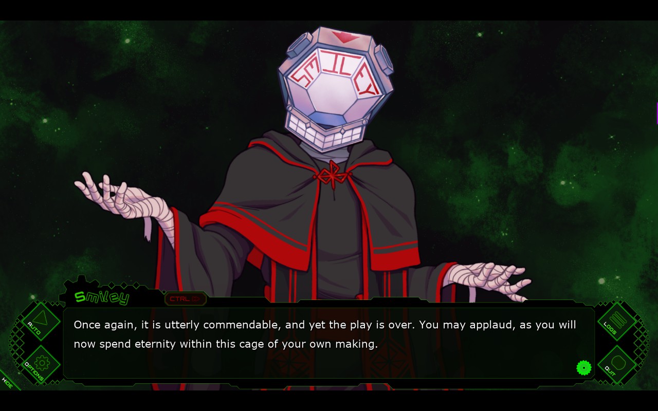 The first entry of the Abime Series. Eight captives must cooperate or compete to escape an underground subway under the manipulation of a dangerous psychopath. Can you really trust anyone? What about yourself? And what is the meaning of a good ending? Is reaching one even possible?