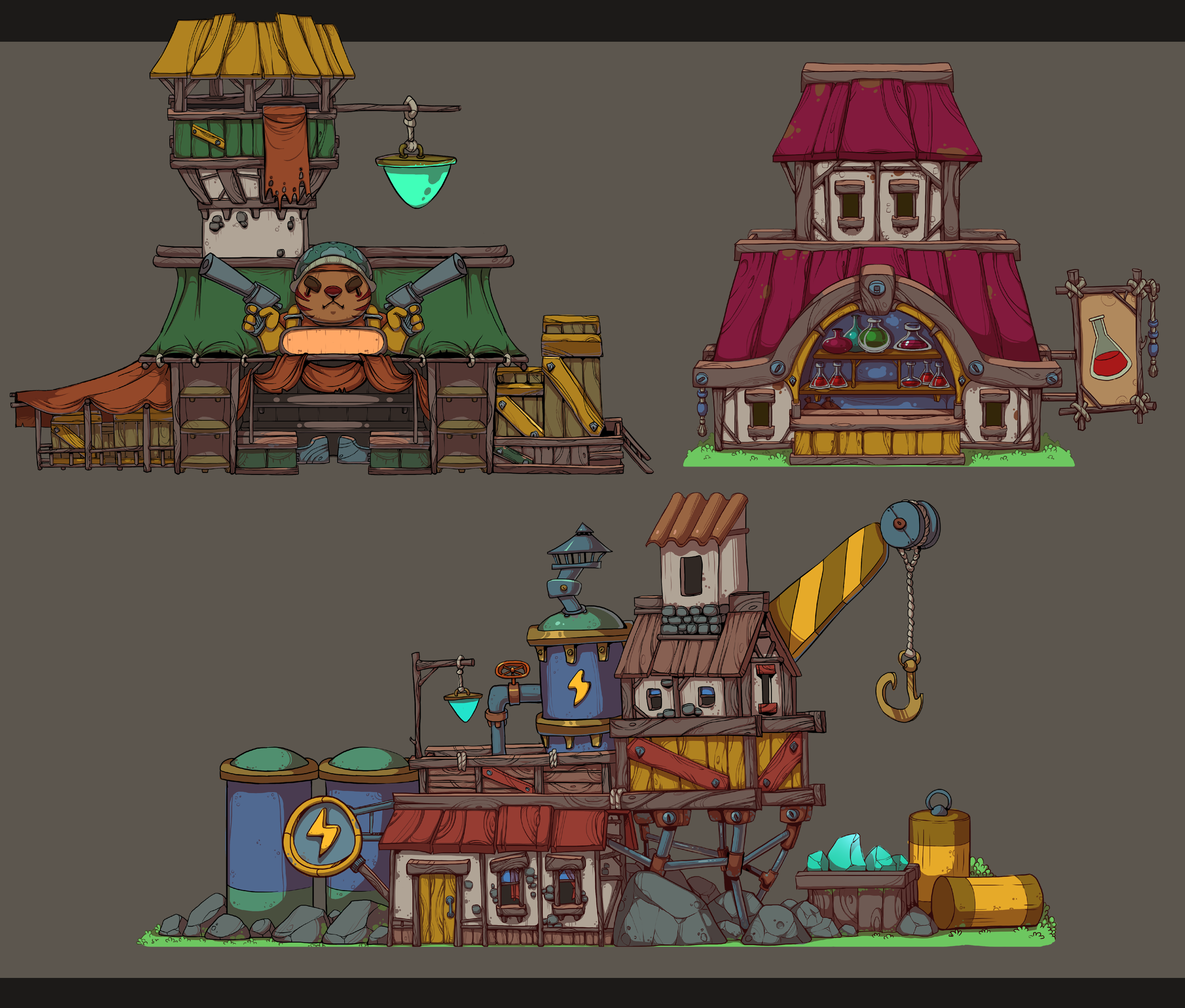 Alchemist factory for example. In this building you can create a new poisons and cooking some dishes. It help you to improove your characteristic in fight.