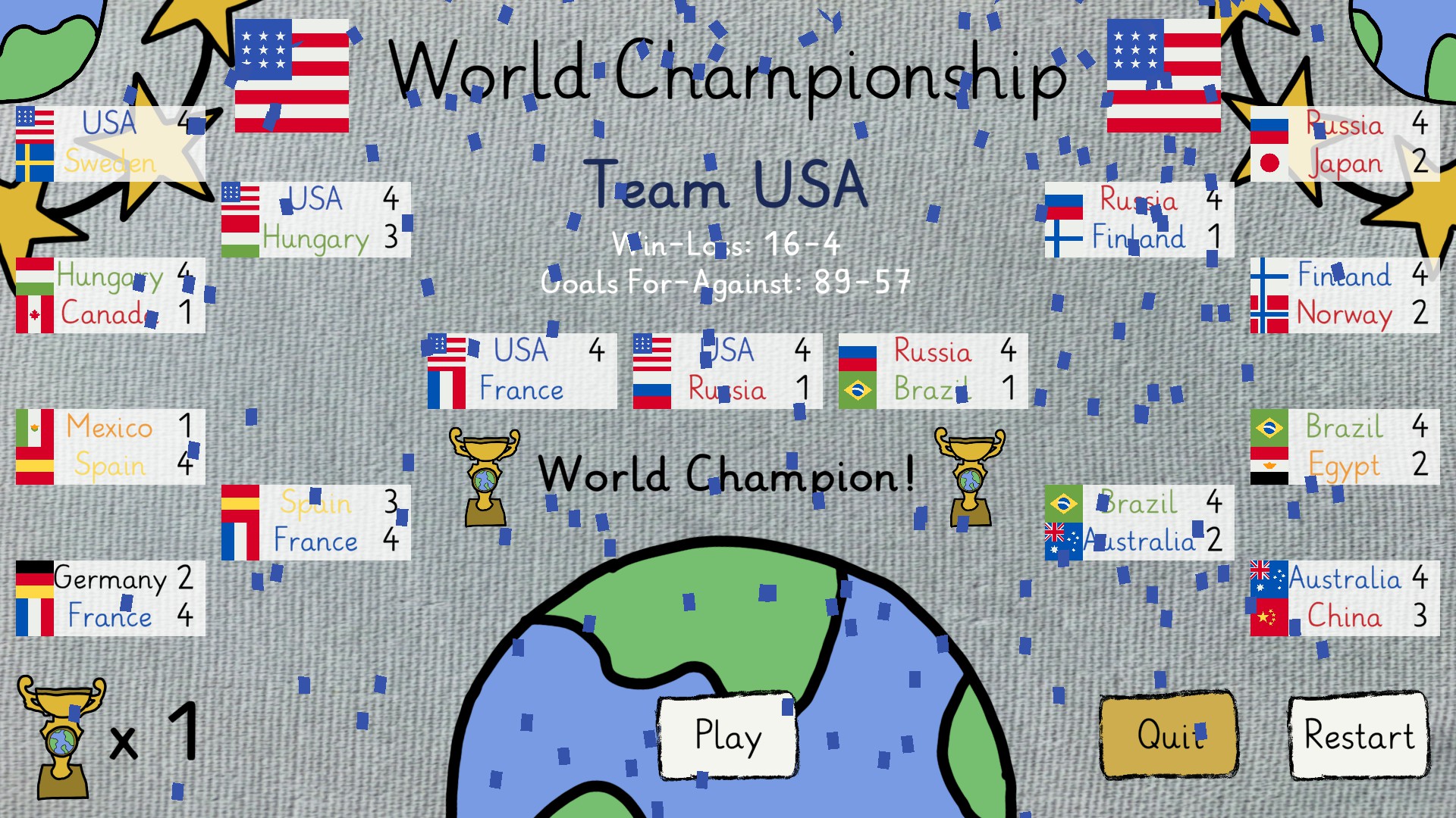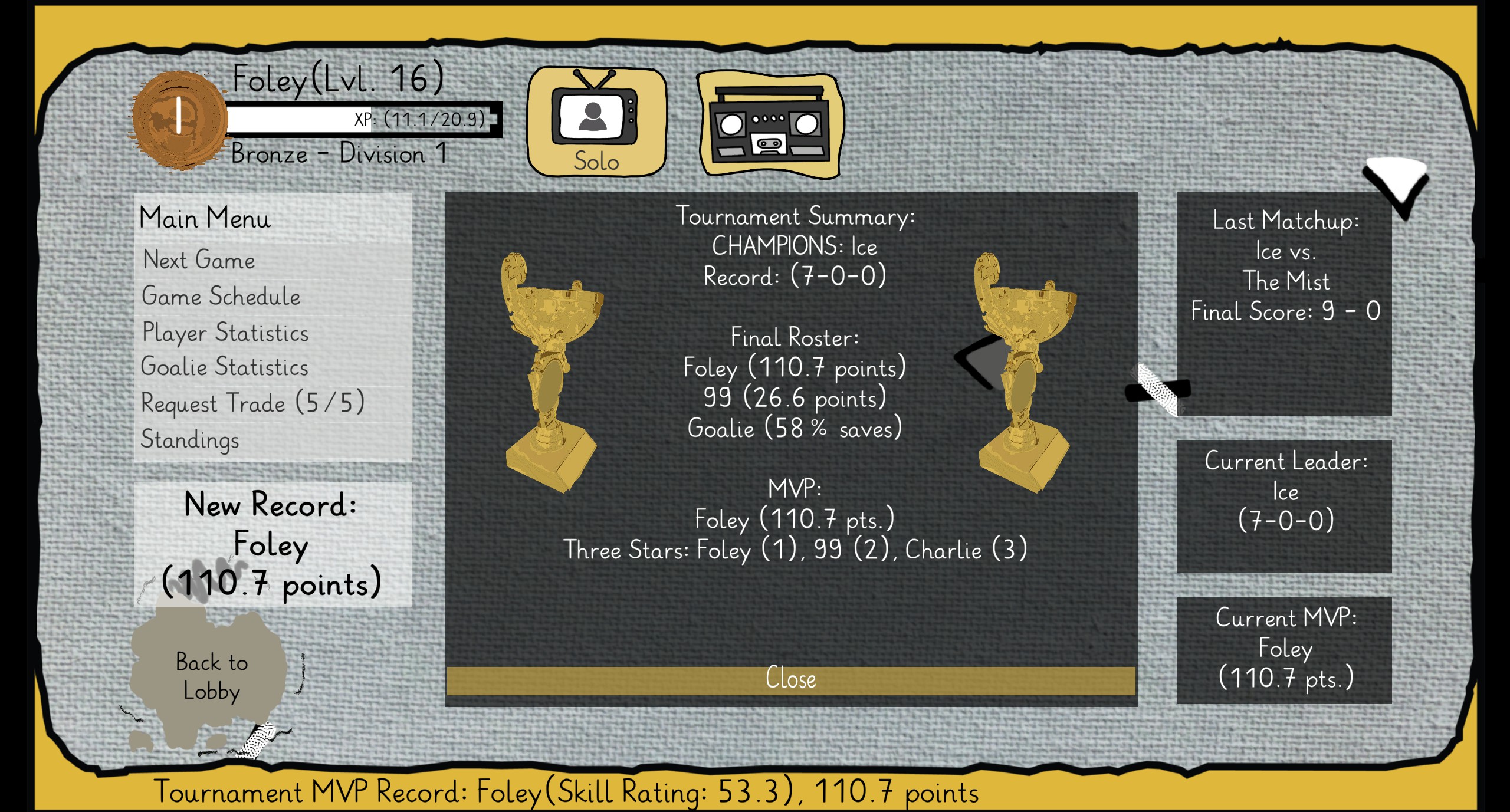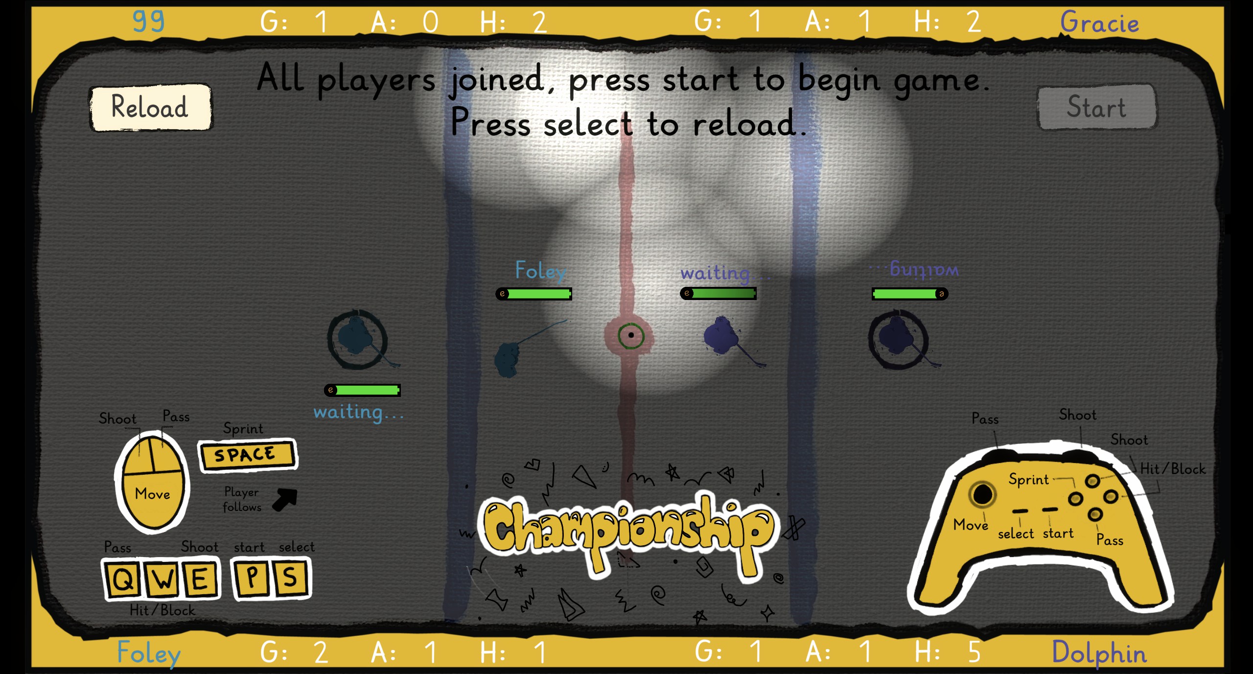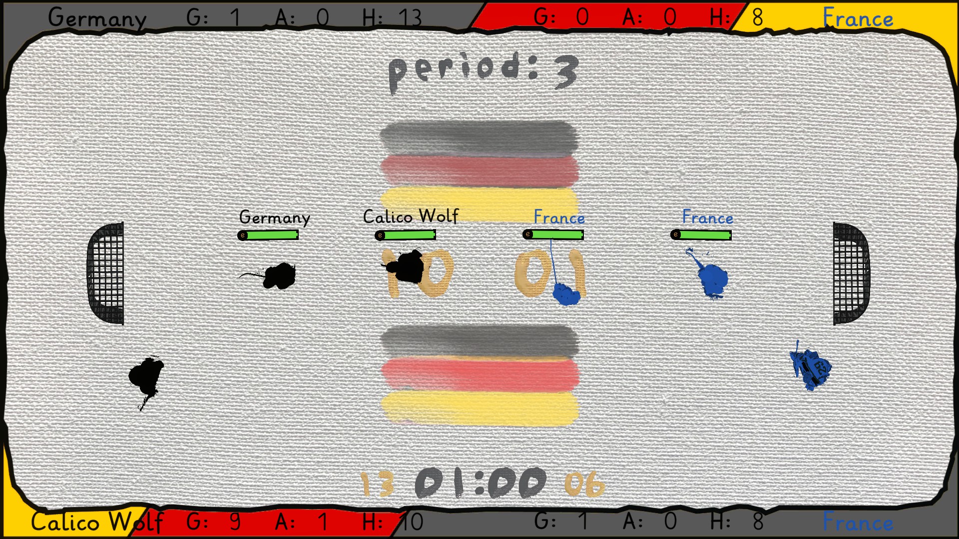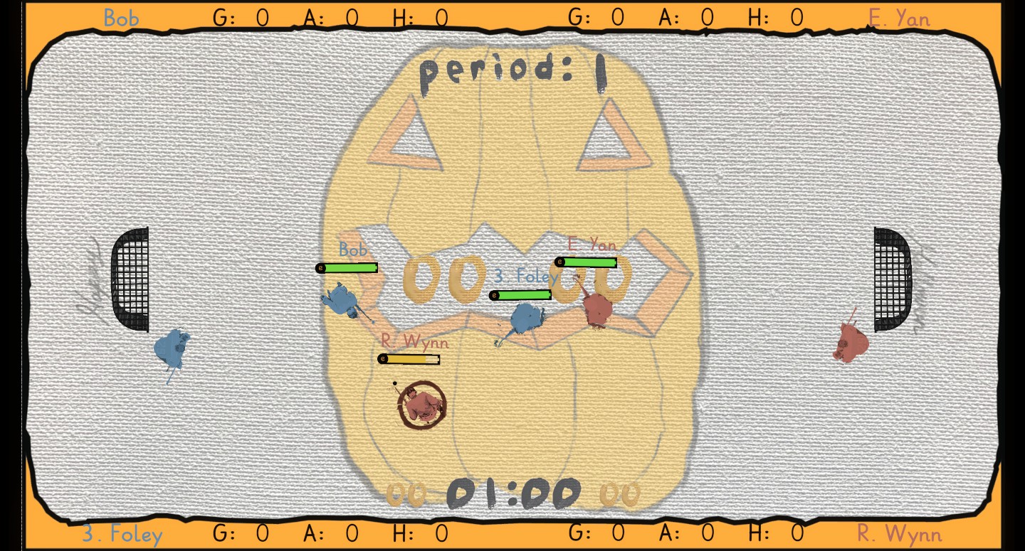 Canvas Hockey is a top-down, arcade-style party game with local multiplayer tournaments and a single player or co-op campaign. The game uses a painted art-style with inspirations from the 90's.