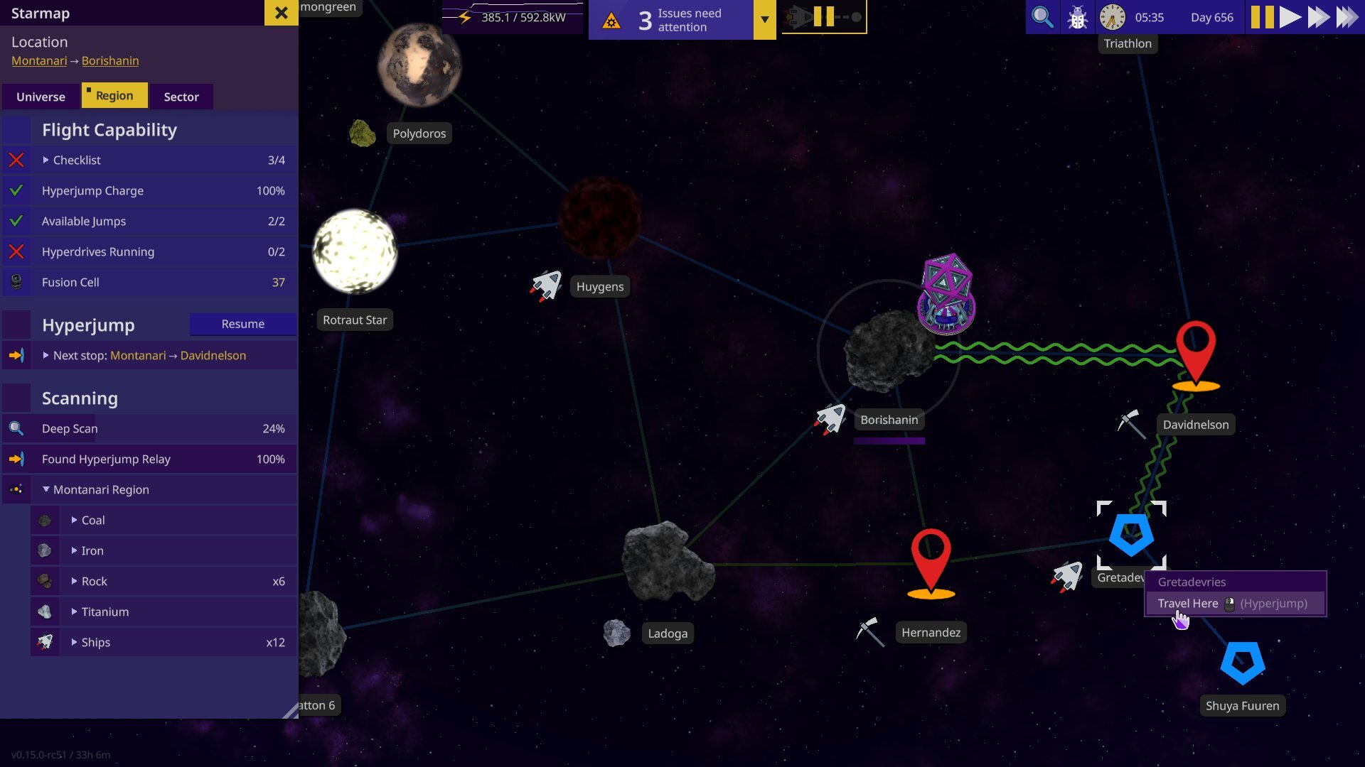 While the Starmap itself hasn’t changed much, the side menu got the full treatment. Tabs & a embedded list of resources known to exist to the player.