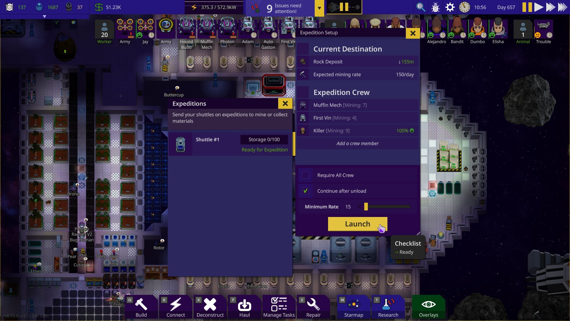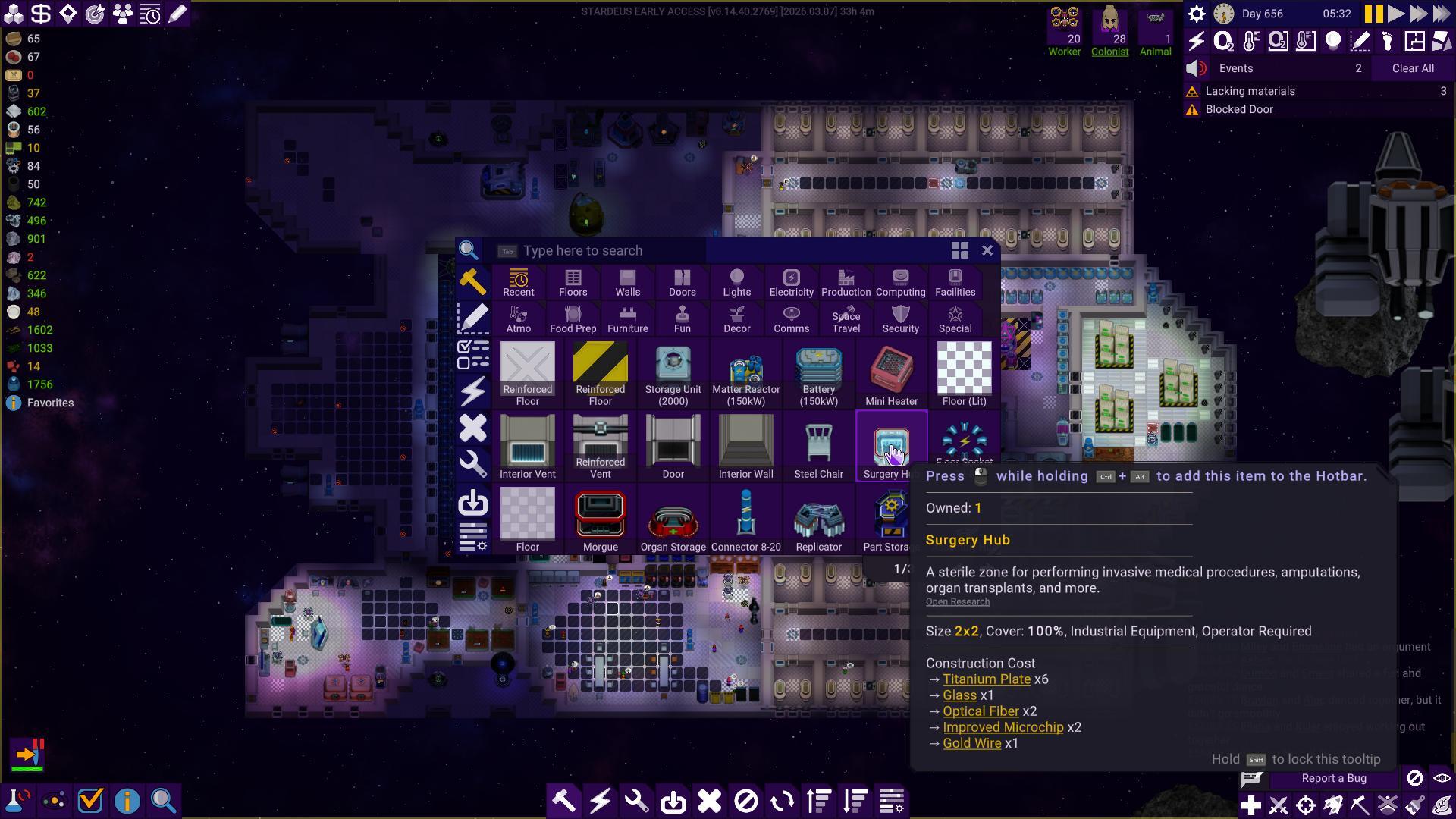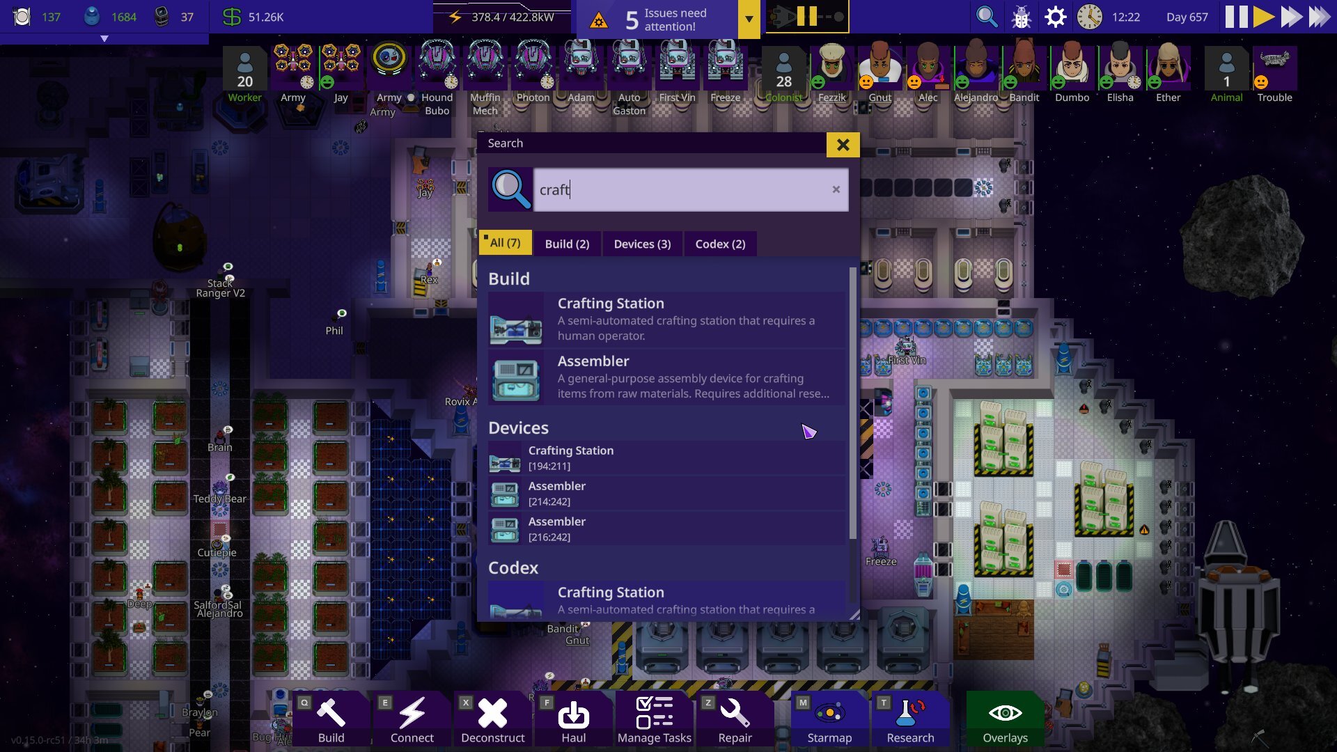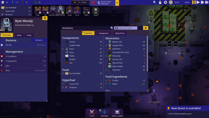 We noticed how the notification hub became something players usually just ignored after a while of playing, adding to the UI fatigue. We’ve addressed this in the new notification hub with the number of notifications and an icon of the most important notification showing at a glance. Expanding hub gives you a list sorted by importance. The expandable list makes it easier to drill into the details of each notification. For instance, previously we needed a separate UI for listing devices that lacked materials, but now it’s built straight into the notification hub.