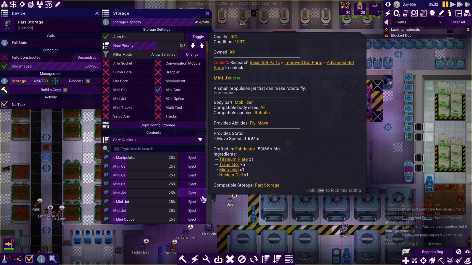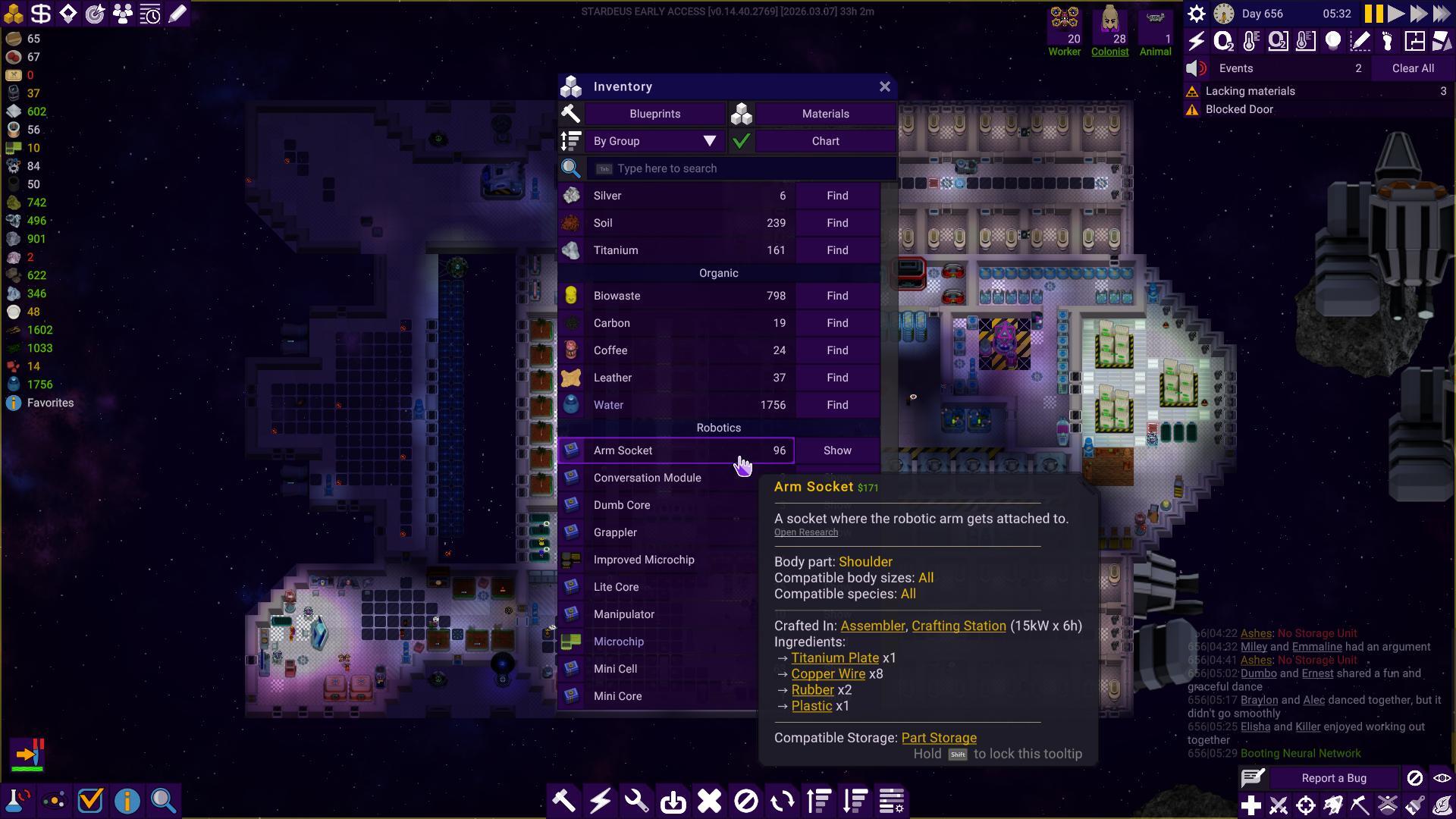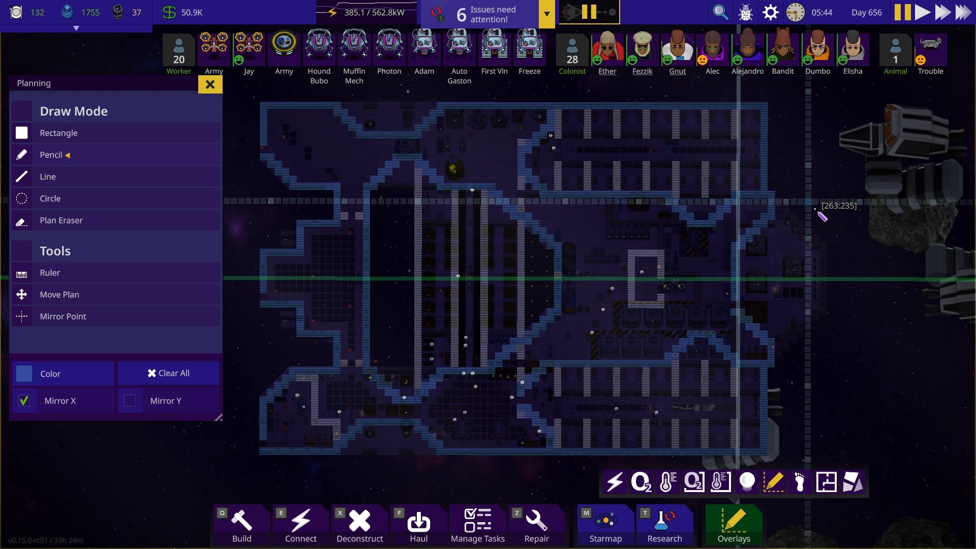 We noticed how the notification hub became something players usually just ignored after a while of playing, adding to the UI fatigue. We’ve addressed this in the new notification hub with the number of notifications and an icon of the most important notification showing at a glance. Expanding hub gives you a list sorted by importance. The expandable list makes it easier to drill into the details of each notification. For instance, previously we needed a separate UI for listing devices that lacked materials, but now it’s built straight into the notification hub.