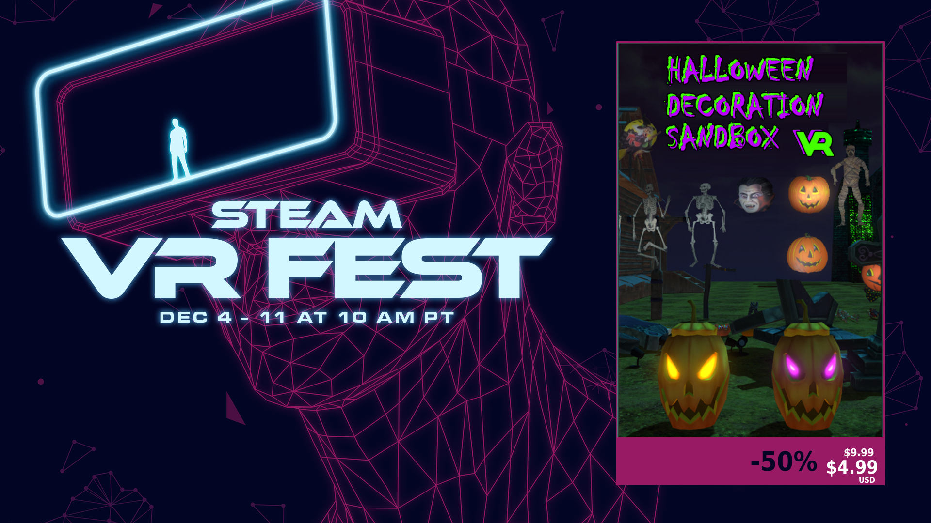 An open world Sandbox game where you create personalized digital home haunts, then walk around trick or treating in VR.