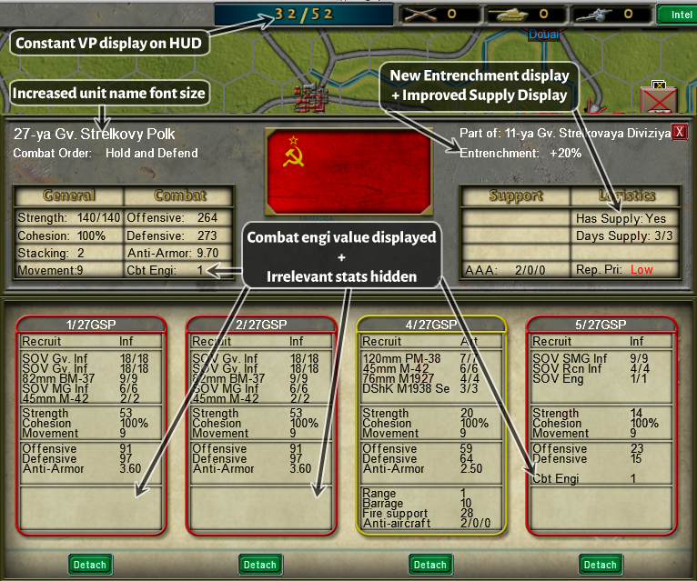 Update 1.0.9.5 continues our efforts to gradually improve the UI by highlighting information that was previously either poorly communicated to the player or totally absent. As an example, Anti-Tank, Barrage, and Combat Engineering now all display a 1-word assessment in combat reports so players can immediately determine what’s “enough.” See the example below.