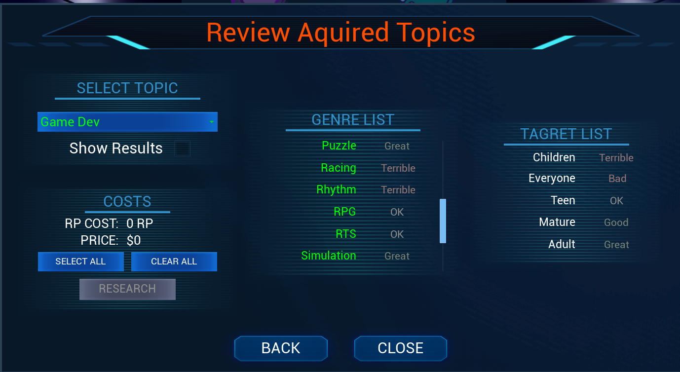 It's time to become the Game Developer you always wanted to be. Make use of a large array of features, and player skills to create stunning 10 / 10 games. Compete with and eventually acquire other dynamic Ai Studio's. Raise the talent of your team and studio's in an effort to dominate the market.