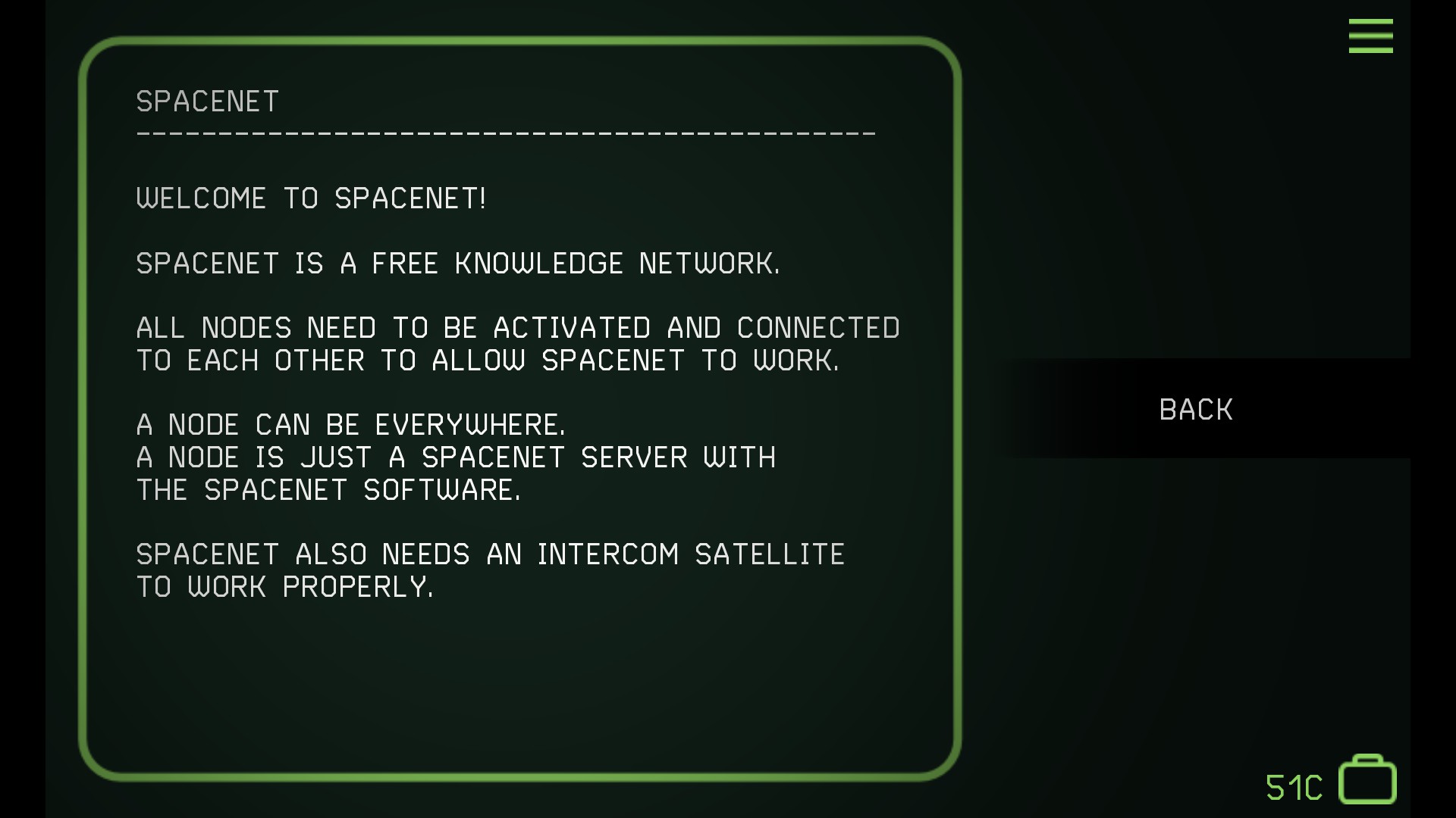 SpaceNET is a non-linear retro sci-fi adventure. Less graphics, more story! Along with an amazing soundtrack and a really atmospheric soundscape, the minimalist graphics allows a deeper immersion into the story.
