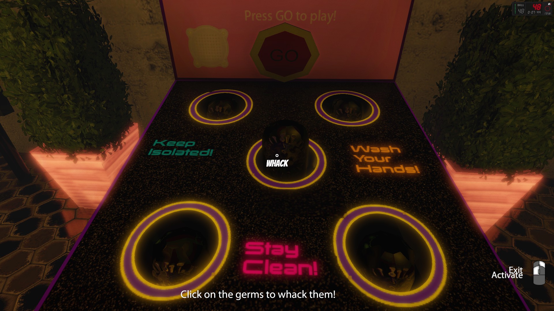 Explore a surreal nightclub drenched in neon and haze. Create music, play arcade games, discover the whole labyrinthine club, and leave a message for future visitors.