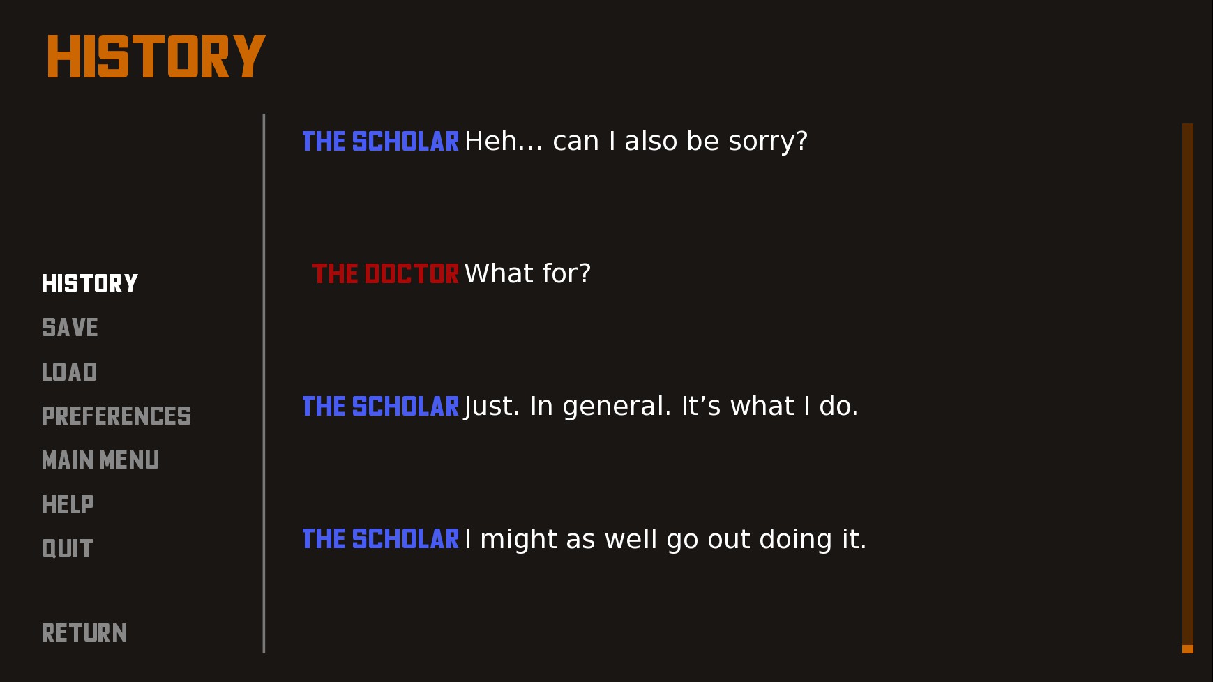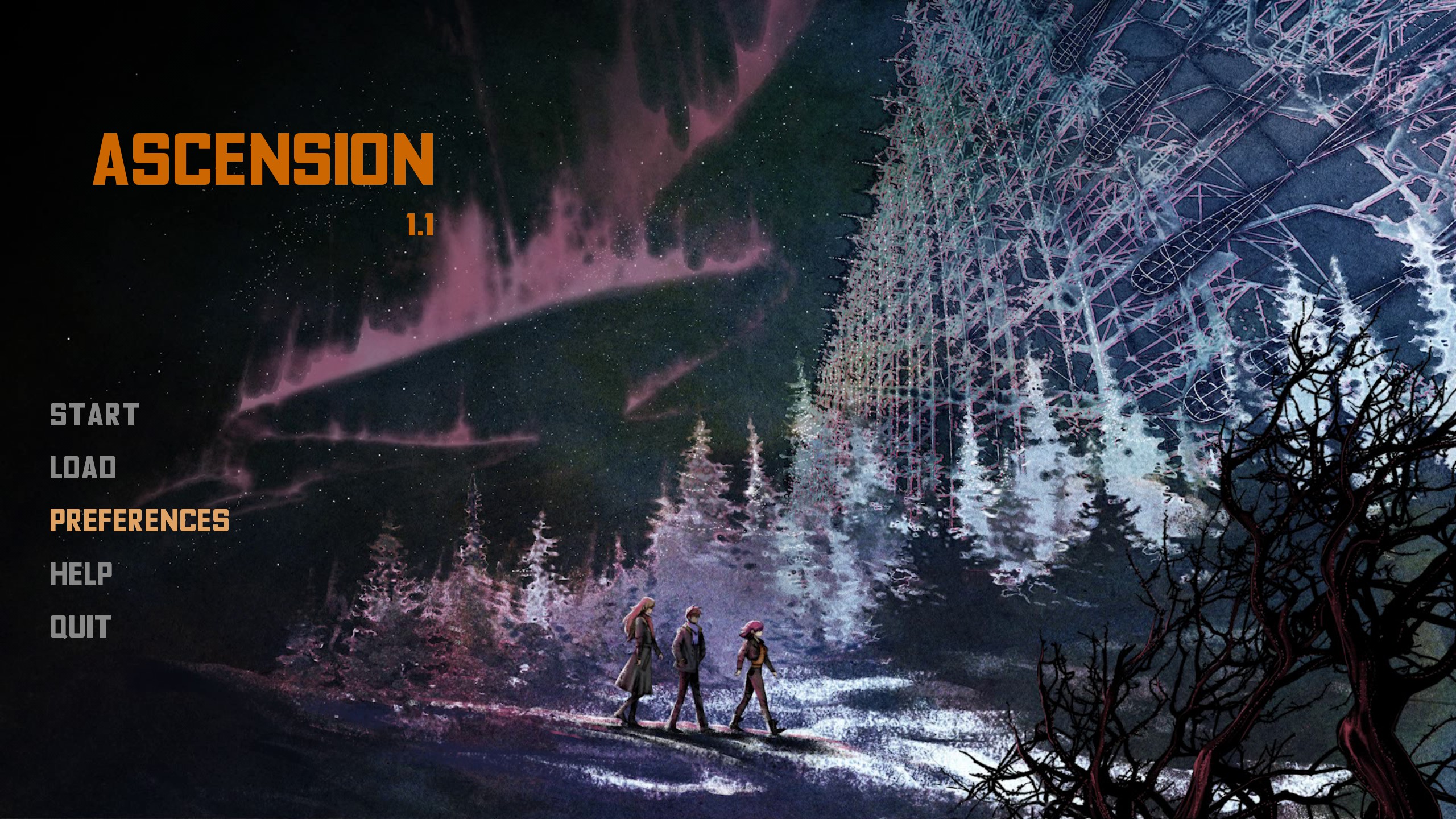 Ascension is a visual novel following three lost souls as they venture into The Zone - a dangerous and alien world. Follow the abrasive Doctor, the shy Scholar and sardonic Escort on their journey - though none of them will come out unscathed.