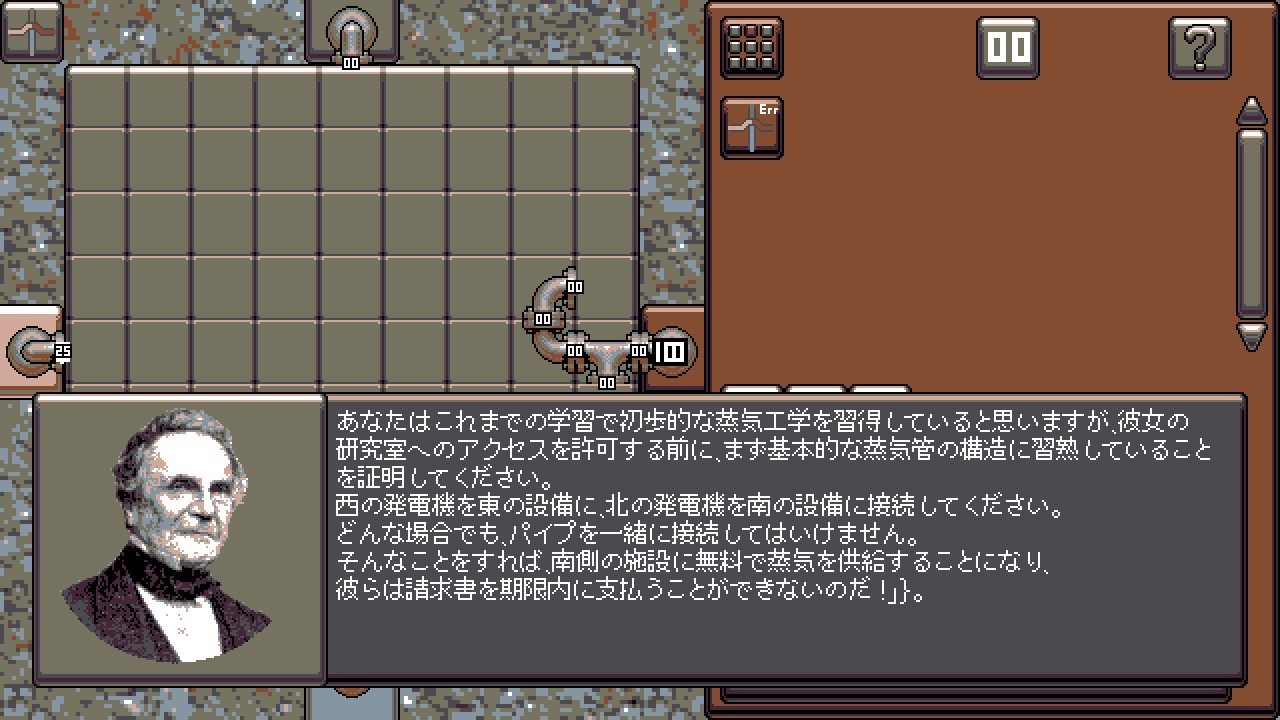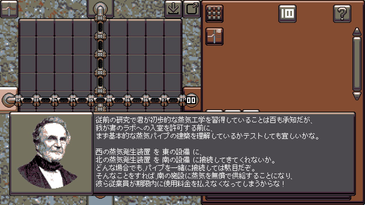 Design increasingly complex computation units powered by high pressure steam. From switches to steam based computers, all in a world of analogue pressure devices. Use previous designs to solve further challenges, unravel the mystery of the missing steam and discover a new field of science.