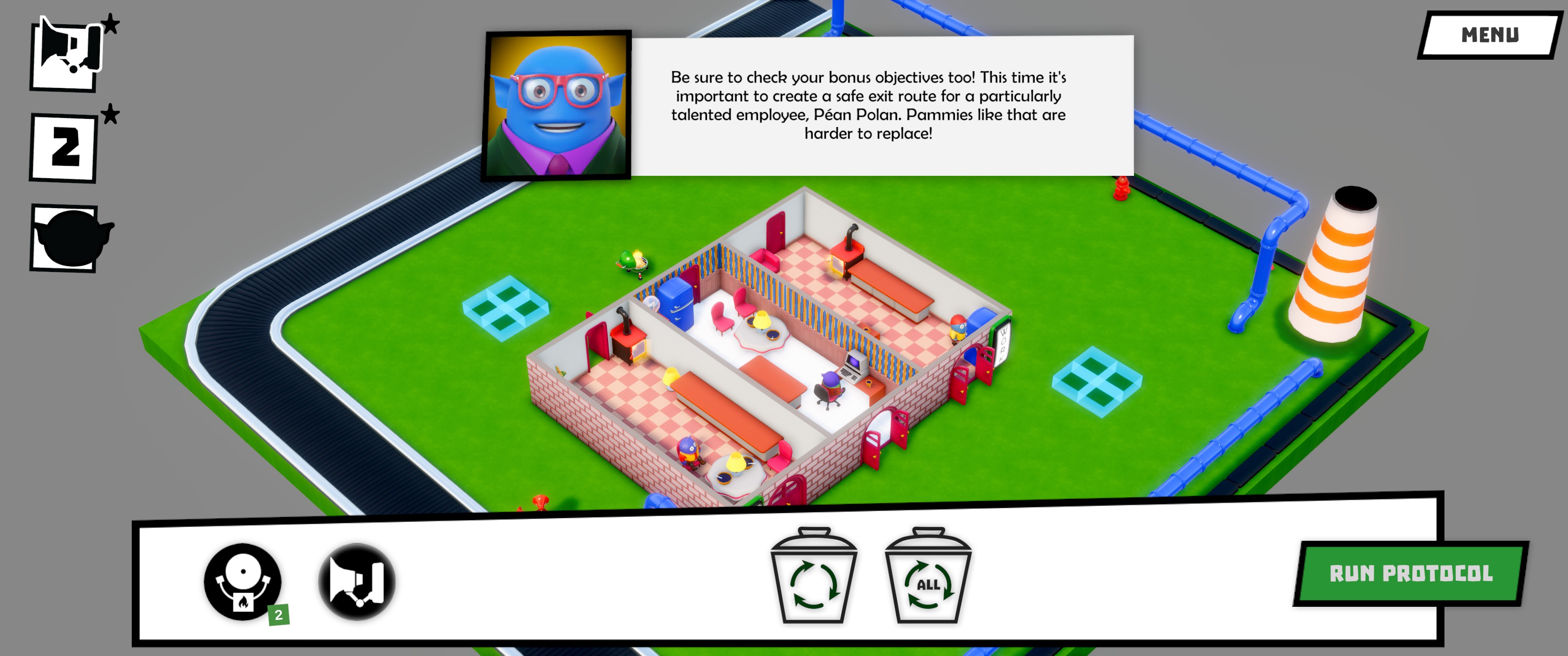 Attention all humans – the planet’s best and only company is now seeking a safety inspector intern to crisis-proof all corporate properties! Use contraptions to create evacuation routes that ensure the survival of Pamperümpel Industries’ valued employees. This is not a drill!