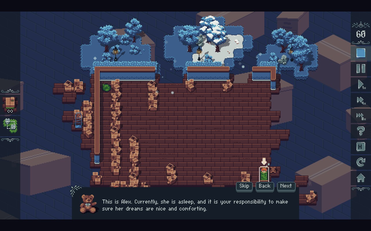 Alex is still small, but her dreams are big. You are her Dream Builder, tasked with constructing labyrinths full of distractions to keep Nightmares away until the morning comes. Sweet Dreams Alex is a wholesome puzzle and construction game, filled to the brim with atmosphere and charm.