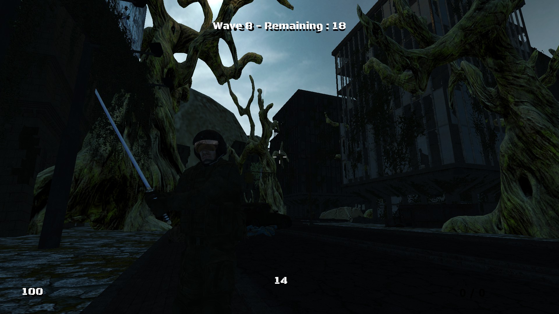 Is an arena first-person shooter in which the player will have to fight off waves of monster attacks, find weapons and supplies to survive