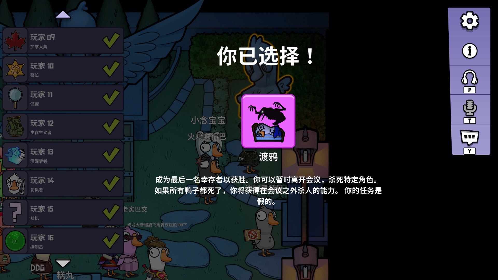 Goose Goose Duck is a game of social deduction for up to 16 players. Players are separated into different groups that are each assigned a different objective. Complete your team’s objective to win!