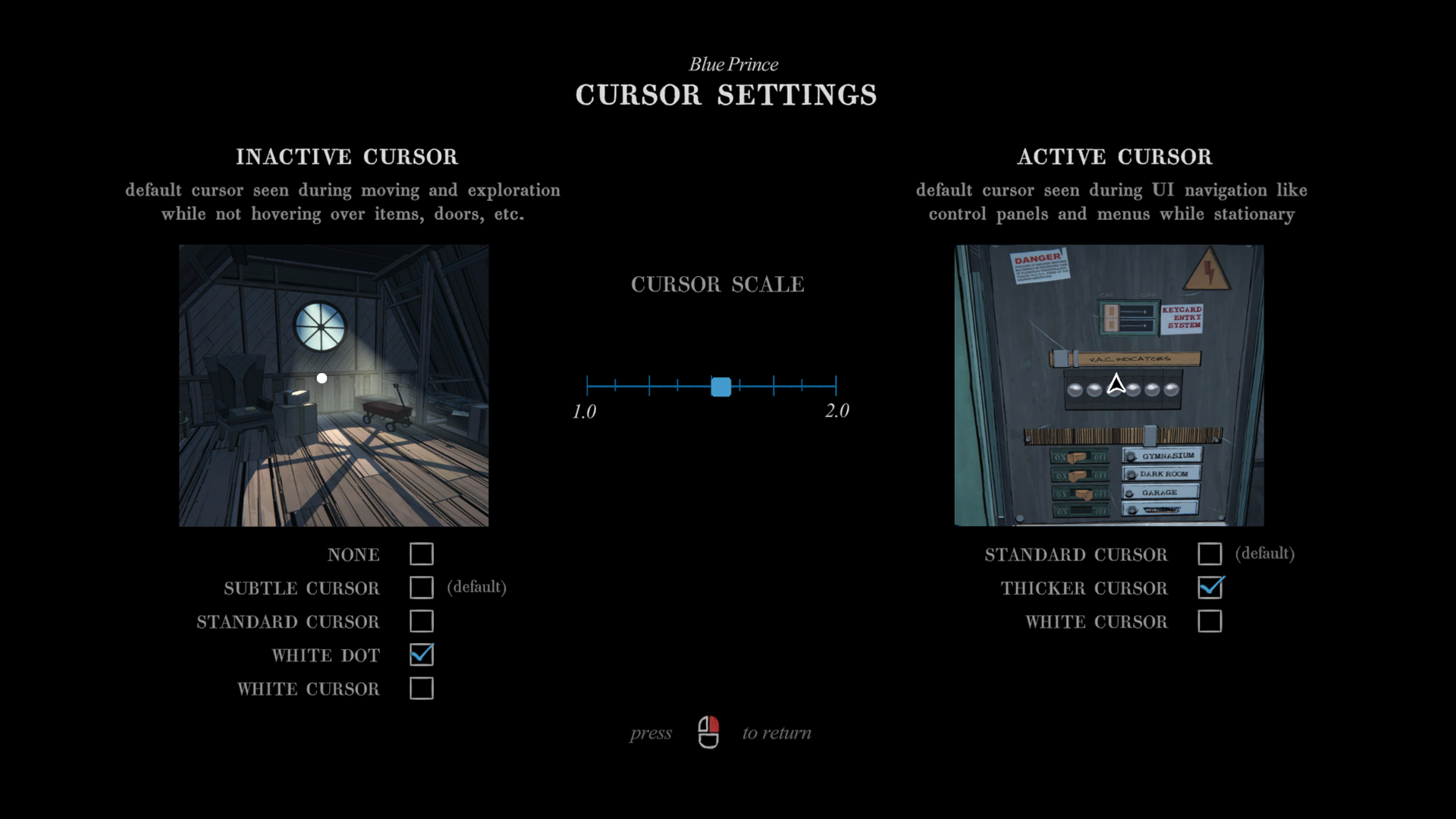 Cursor Set - Options for changing the opacity, style, and size of the game’s reticle and cursor (this is part of our new Motion Assist options.)