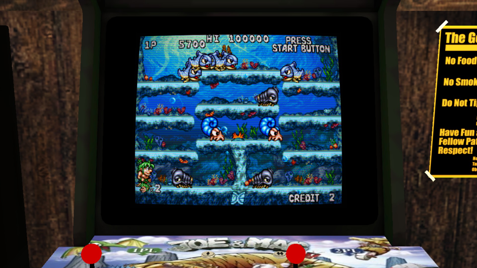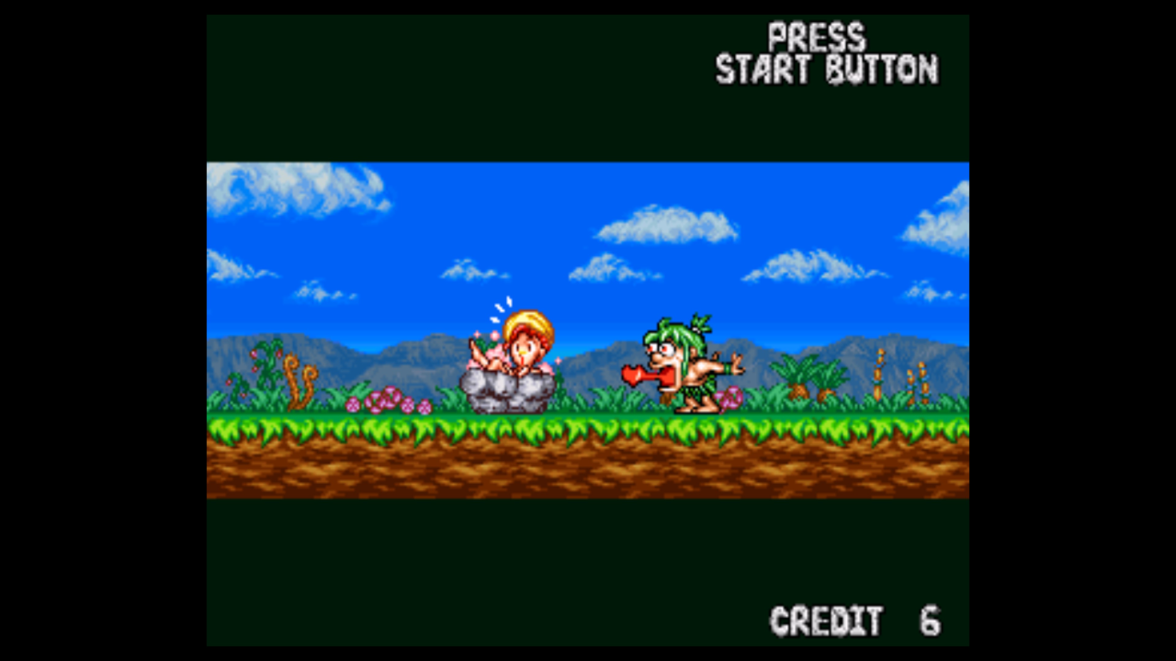 Joe & Mac return in this frantic and zany single-screen arcade action platformer from Data East™. The local cave women have been kidnapped once again, so it’s up to these stone-age superstars to rescue them. Grab your club and get ready to dish out serious prehistoric pain!