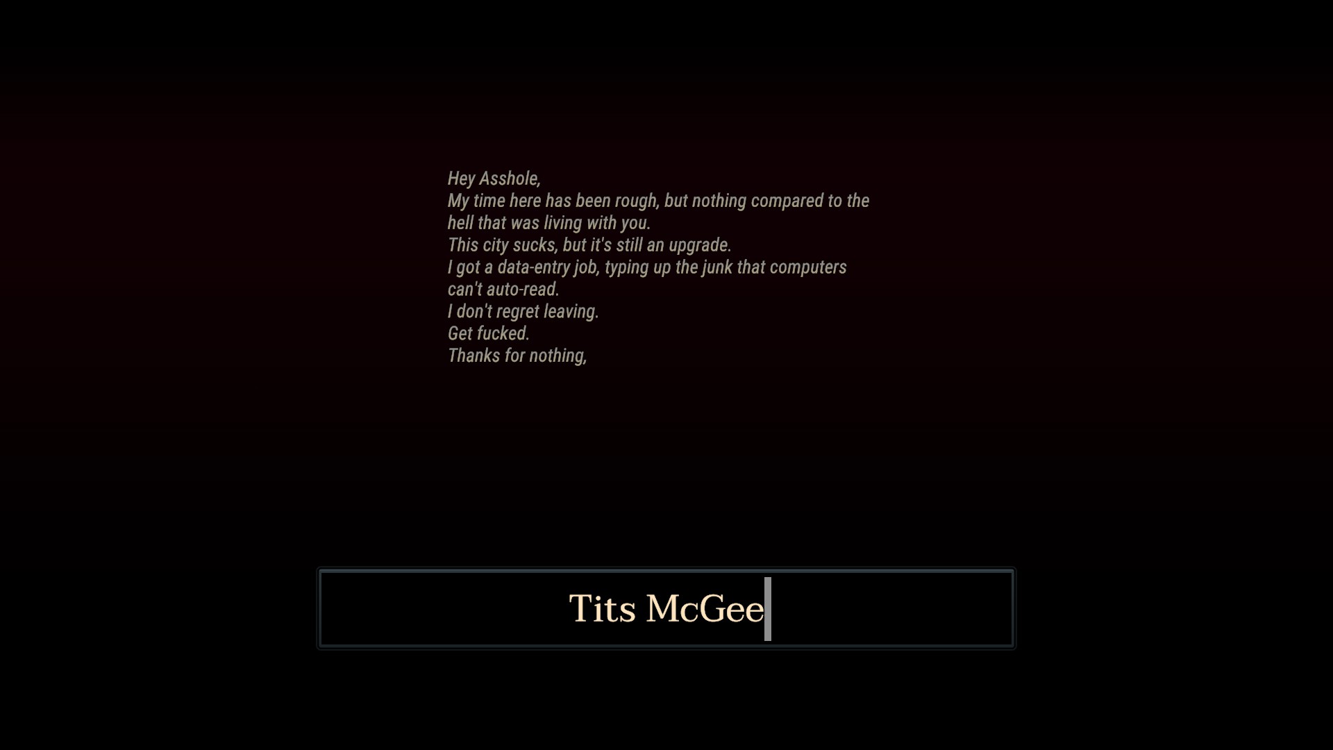 Working at a data entry job in the big city, you type up and transcribe the lost mail and letters that have nowhere else to go. But as the days carry on oddities in the mail start to emerge, and cracks begin to appear.