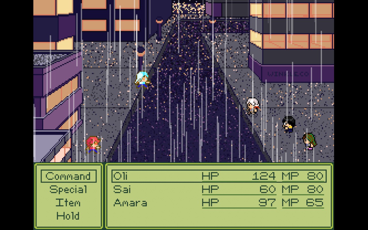 A modern turn-based deckbuilding JRPG involving party synergy for attacks that features unique pixel art and chiptune music!