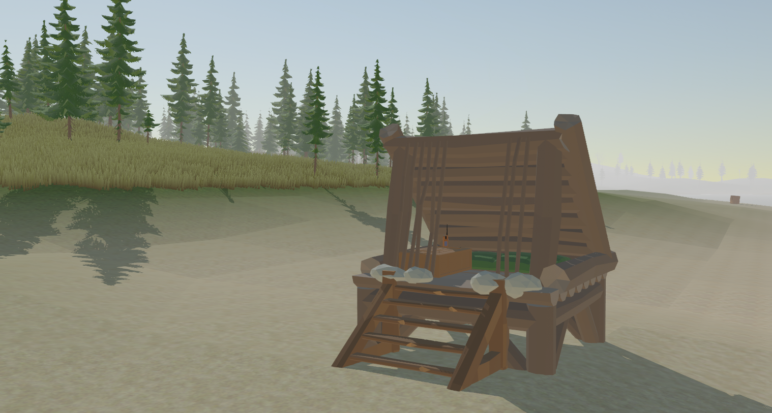 While yes, this game is the VR version of Rust like how Pavlov is the VR version of Counter-Strike, I do not plan on having the same style of monuments (and I want this to be my own game). While there are going to be procedurally placed landmarks, they will be modeled after a more rural area, with likely the "monuments" being either campsites, fake abandoned player buildings, small towns, or homestead-like landmarks.