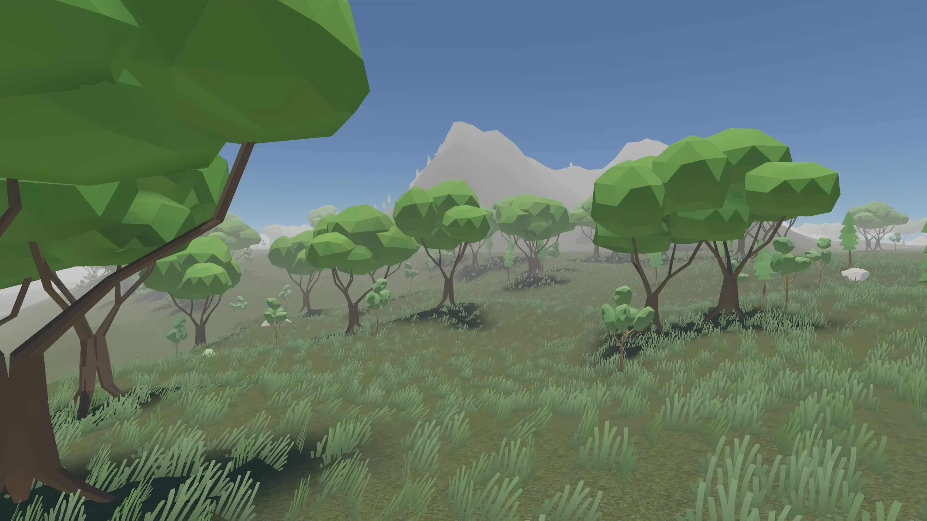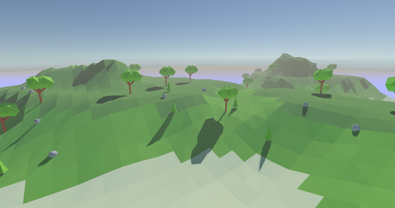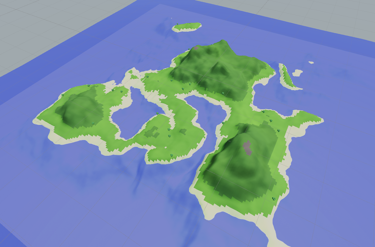 Basically is just spawned one of many natural objects on each vertex of the map mesh. And the map looked like this: