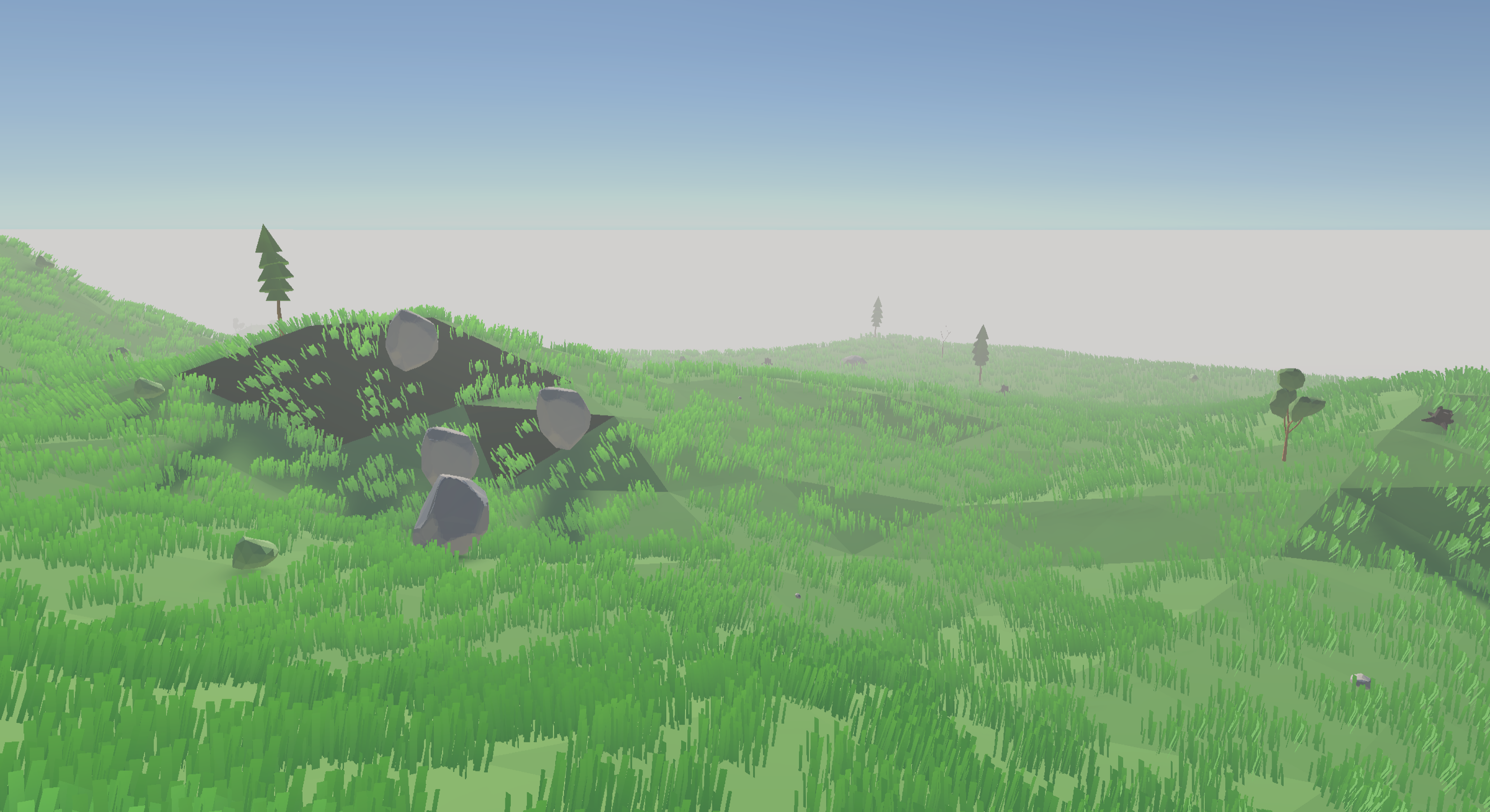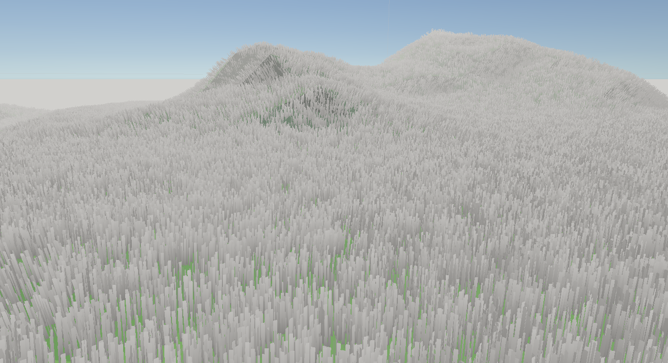 The only issue is that I couldn't control where it was. And then when I could, it was very slow when dense, which if the grass is spare, doesn't look too good. Even when I introduced a draw distance, it still didn't seem to help with the issue. Turns out, the issue was that even though the grass wasn't being rendered, the mesh was still being tessellated, which is the main thing causing issues. With that discovered, now it could run fast!