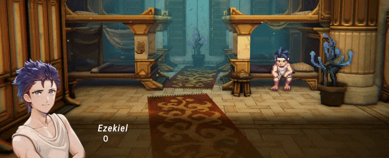 There was also the use of the ‘final exam’ scenario at the beginning, where Ezekiel is undertaking a test, which naturally puts him (and the player) in a situation where they will be receiving instructions. For the most part, though, we simply let Ezekiel move around Antioch freely, and by extension, we hope the player will be able to piece together information about the world based on Ezekiel’s interactions and experiences.