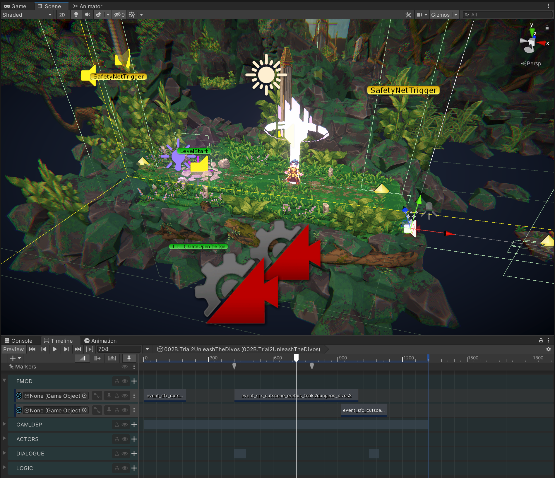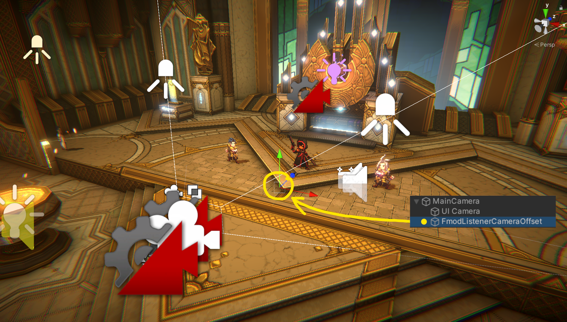 The difference between a game cutscene (especially real-time ones, like in SacriFire) and linear media like anime is that while the camera does take away player control for a moment, we are still set in the very same scene in which we were just running about freely. The problem is, some sounds that are needed in dungeon exploration, are at the same time potentially annoying in a cutscene, like Checkpoints present in dungeons. Or if the camera flies away from the player character, how do we make it so that we hear what it sees? And what about changing shots and idling audio emitters suddenly cutting out due to the sudden jump of distance?
