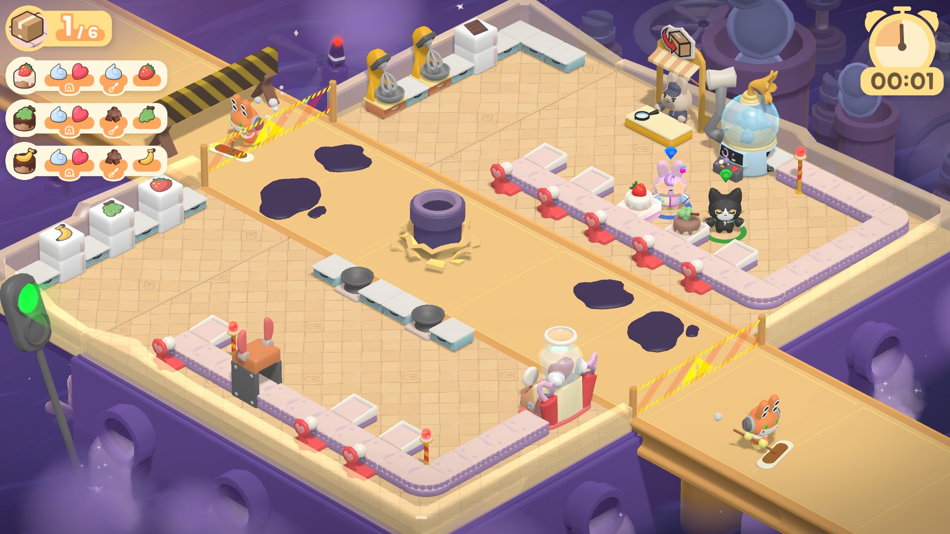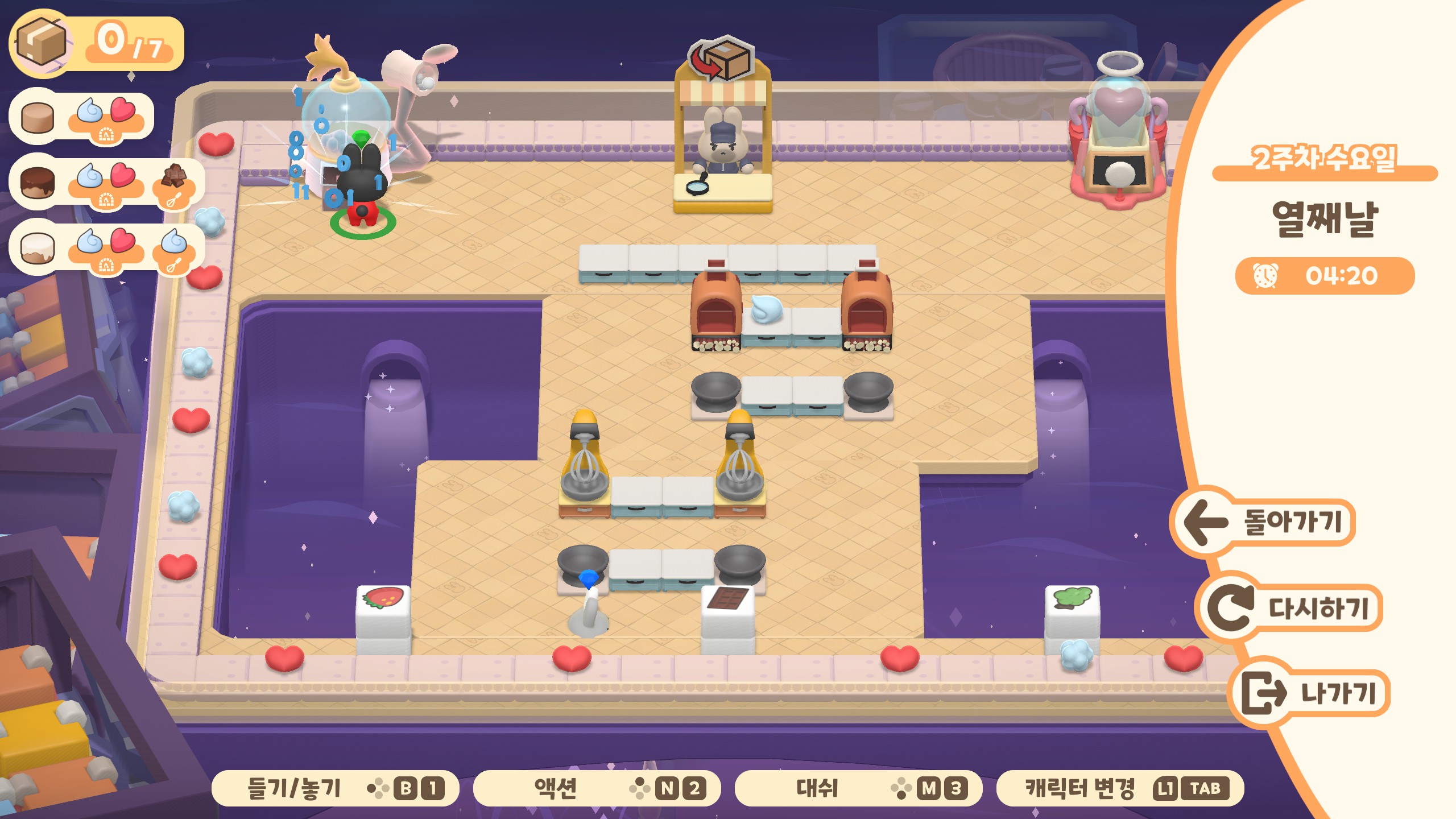 Turn the Line is a co-op tycoon game that allows 1~4 players. Cute characters, simple manual, but with difficult levels! Anyone can give it a shot, but not everyone can do it perfectly! Challenge perfection, so that the bunnies can leave work on time!