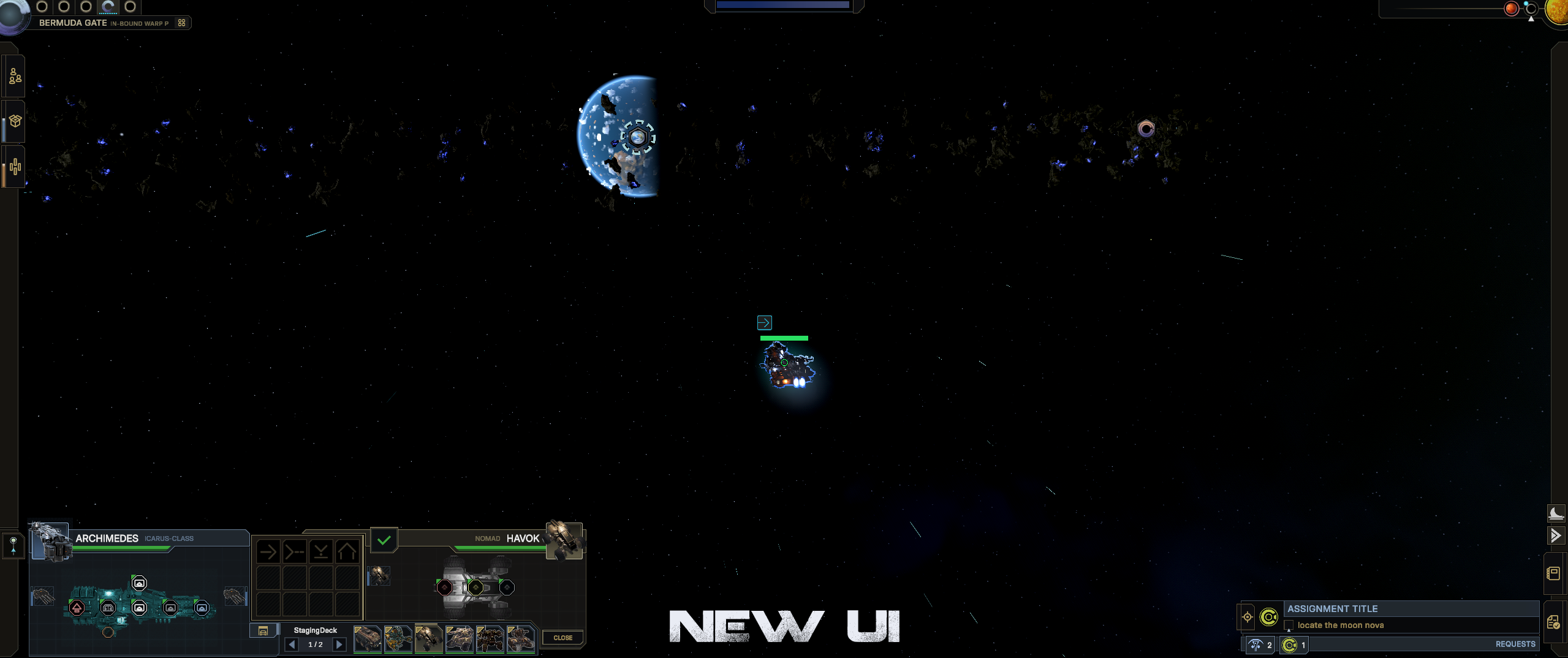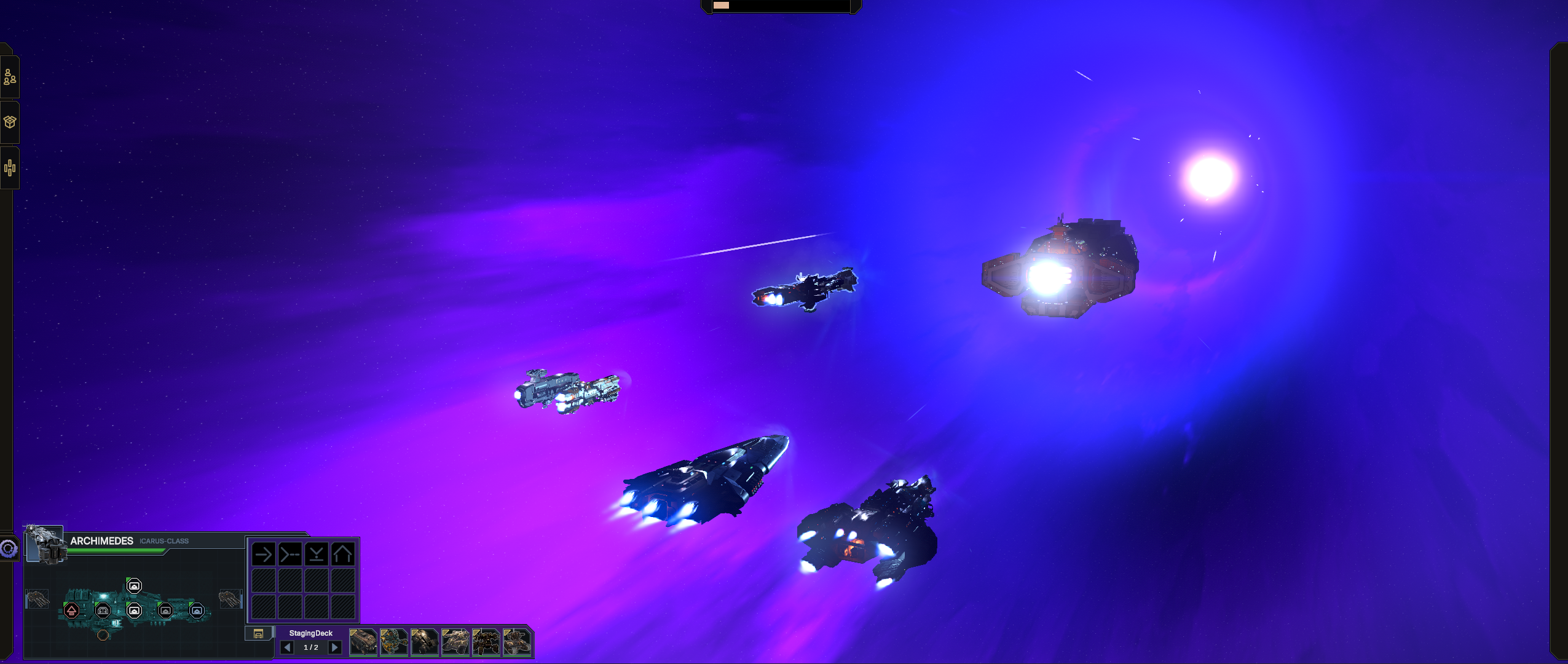 Beyond this, we also improved how cargo is transported between fleet capital ships, providing more UI functionality to 'pin' certain destination targets and effortlessly set up transfers between the two ships. Dropships will actually wait until the best time to deploy, and of course there's matching radio chatter depicting the logistics of all of this as it takes place. On the support craft side, we also improved the way that such vessels make there way back to their respective home capitals-- intercepting a moving ship at a future rendezvous point, rather than just flying directly towards it. We still want to improve the docking animations and such, but that's a later goal!