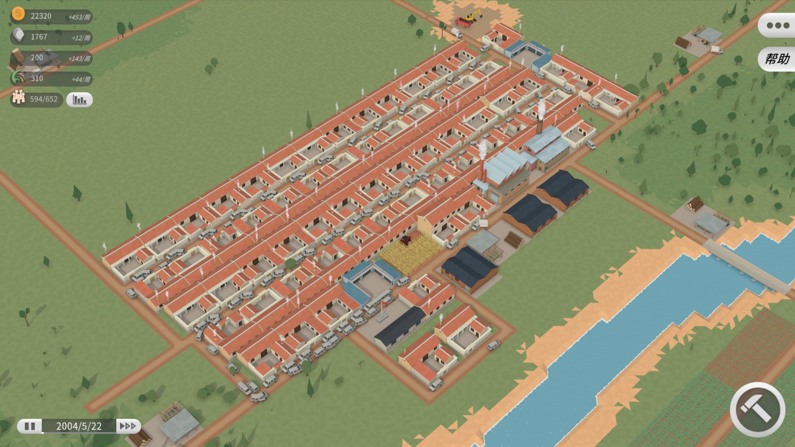 这是一款以农村为背景的模拟经营游戏。建造农田、伐木场、采石场等建筑来生产基础资源,建造加工厂来生产利润更高的产品,在市场售卖产品获得利润,为村民升级房屋和工作场所增加幸福度,在乡政府解锁政策调控生产。最终目标是建立美丽新农村。