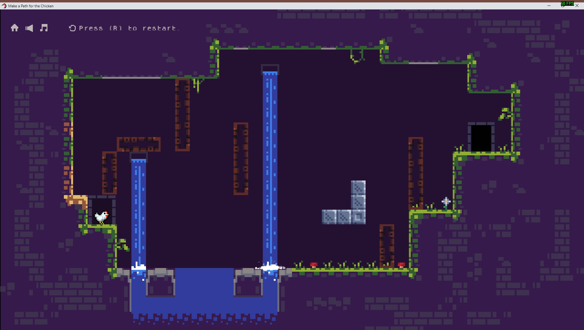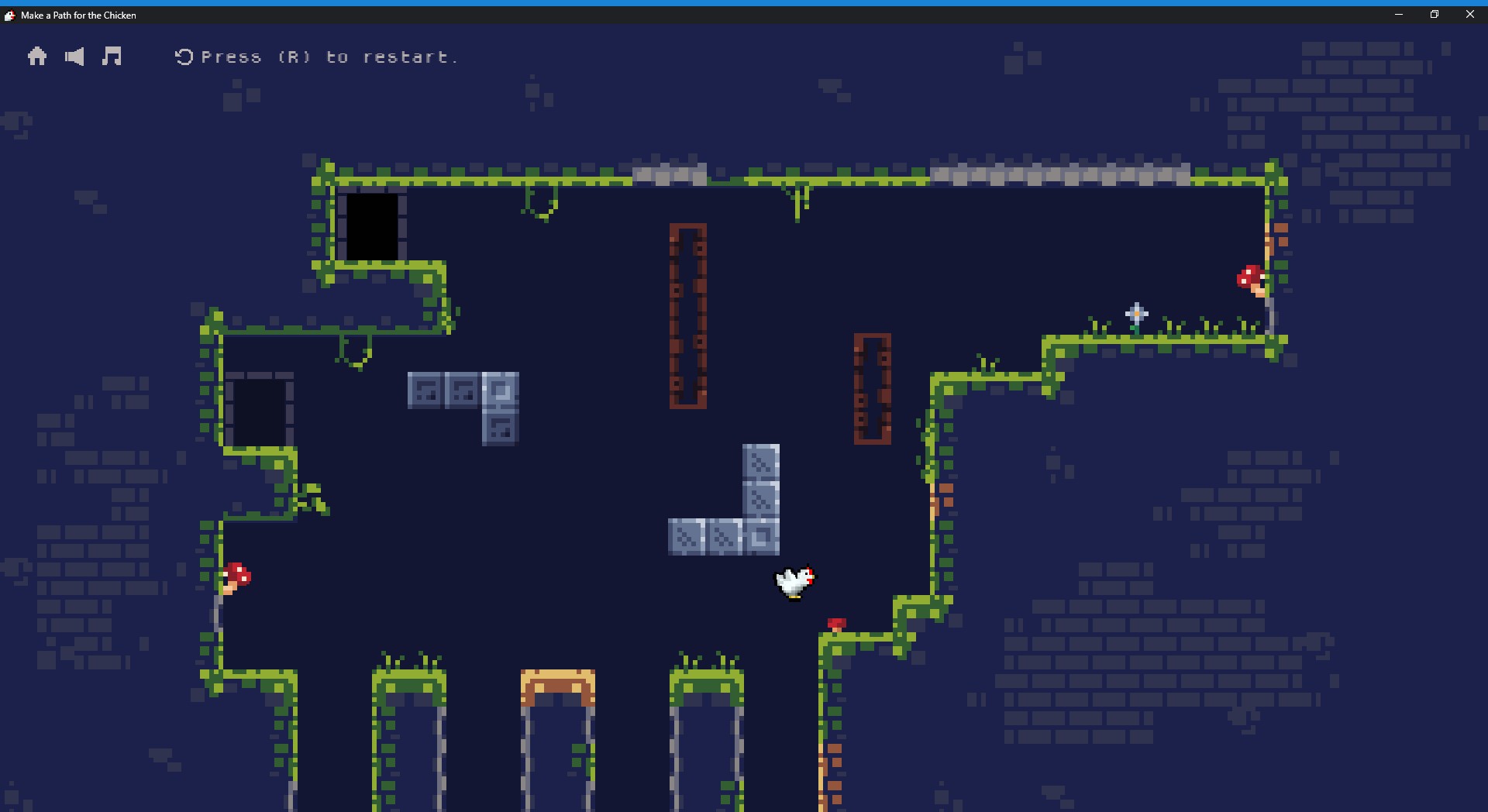 After falling into a hole, this Chicken finds herself on a journey to find her chicks. Solve puzzles and make a safer path for the chicken to complete this journey.