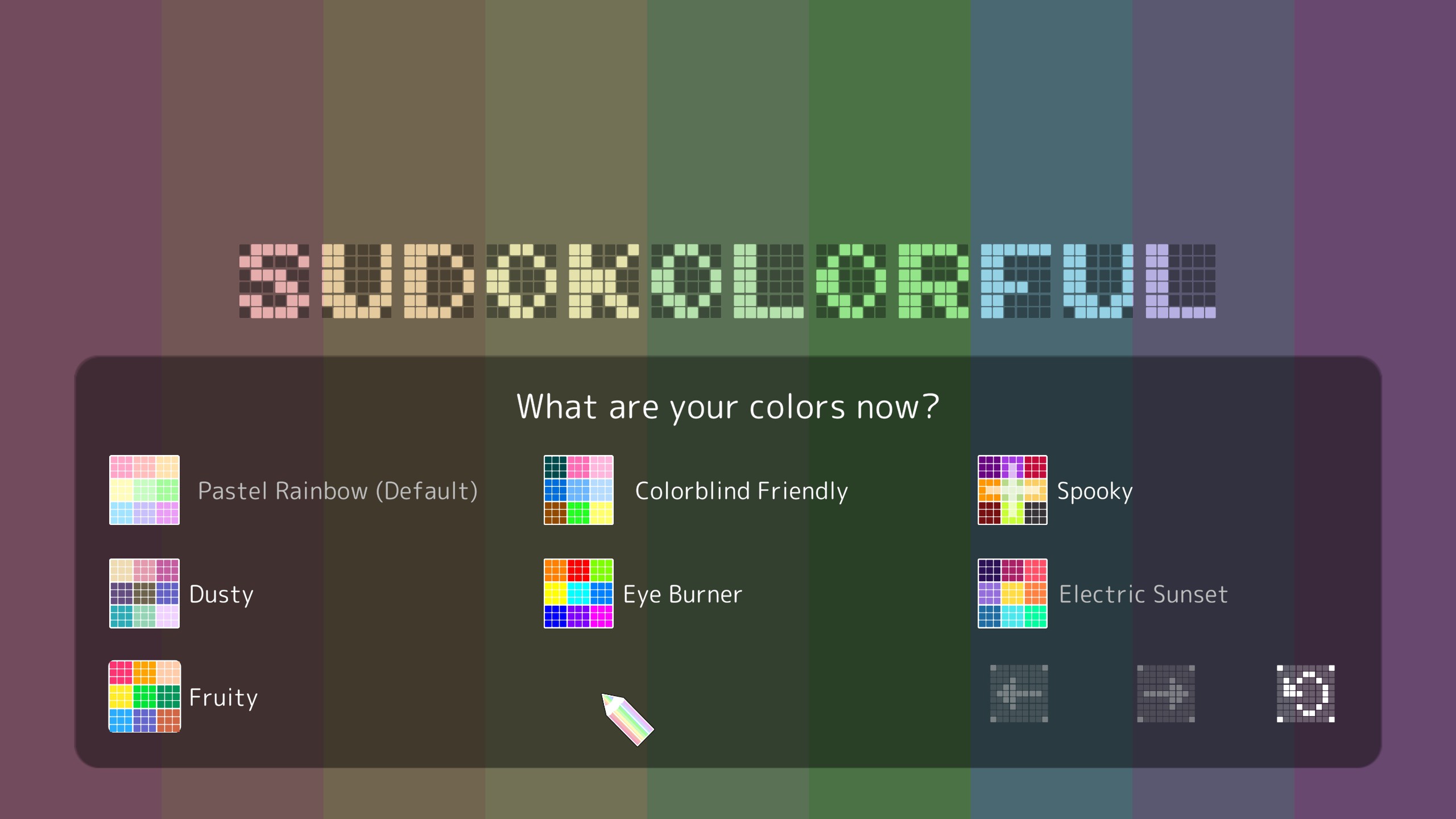 When Sudoku meets Pixel Art. Play with colors (7 palettes, including colorblind friendly). The game has Progressive and Classic Mode. Progressive Mode has 50 themed challenges with 4 variations each. Classic mode has 90 challenges. Both modes have 4x4, 6x6 and 9x9.
