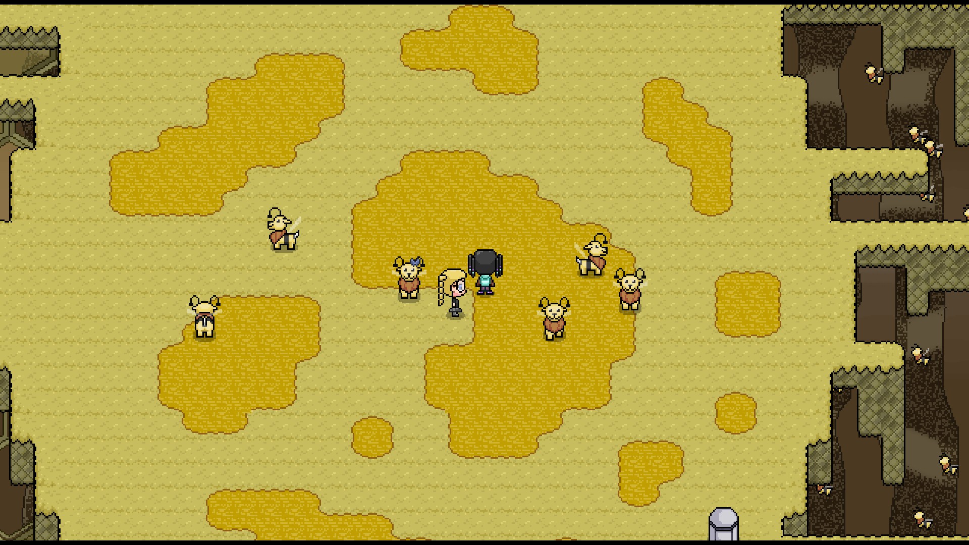 A Humanist retro-style RPG game about sincerity and empathy, featuring friendly robot dogs and evil smiley faces.